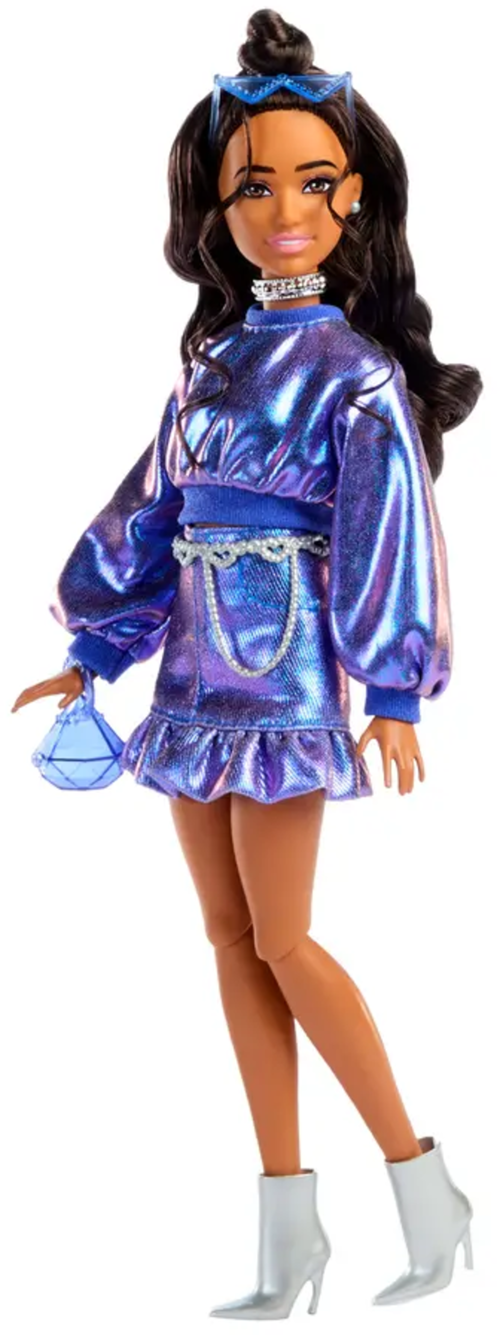 Barbie Modedocka i lyxstil nr 7 i blå metallisk topp och kjol