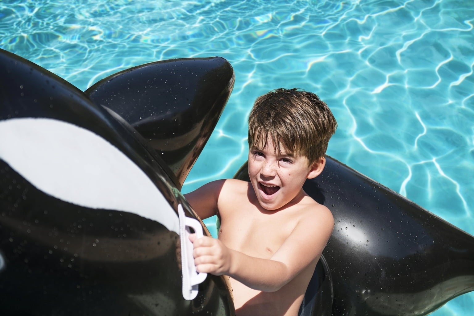 Ahoi, lilla kapten! Är du redo för ett riktigt badäventyr? Hoppa i sommarens bästa upplevelse med simdjuret Jumbo Val från Bestway! Denna vänliga jätte från havet är den perfekta följeslagaren för alla små vattenälskare från 3 år. Den är inte bara enorm, utan också superbekväm! Med hjälp av de stadiga handtagen kan du enkelt klättra upp och glida ner från dess rygg. Med sin gulliga design blir Jumbo Val snabbt favorit i vattnet. Förbered dig på timtals plask och skratt i solen!