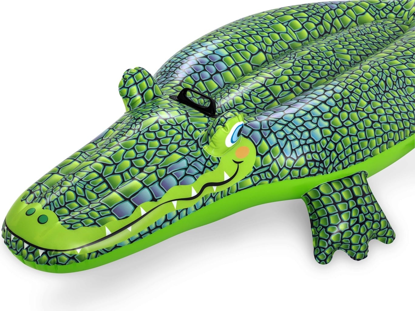 Redo för vild vattenlek? Då är detta simdjur i cool krokodildesign något för dig! Denna vänliga gröna kompis är perfekt för barn från 3 år och garanterar massor av badglädje! För extra trygghet har din nya vän ett robust handtag som du kan hålla i när ni tillsammans utforskar det svalkande vattnet. Och om din krokodil skulle råka ut för ett äventyr för mycket – ingen fara! En praktisk reparationslapp ingår så att leken snabbt kan fortsätta.