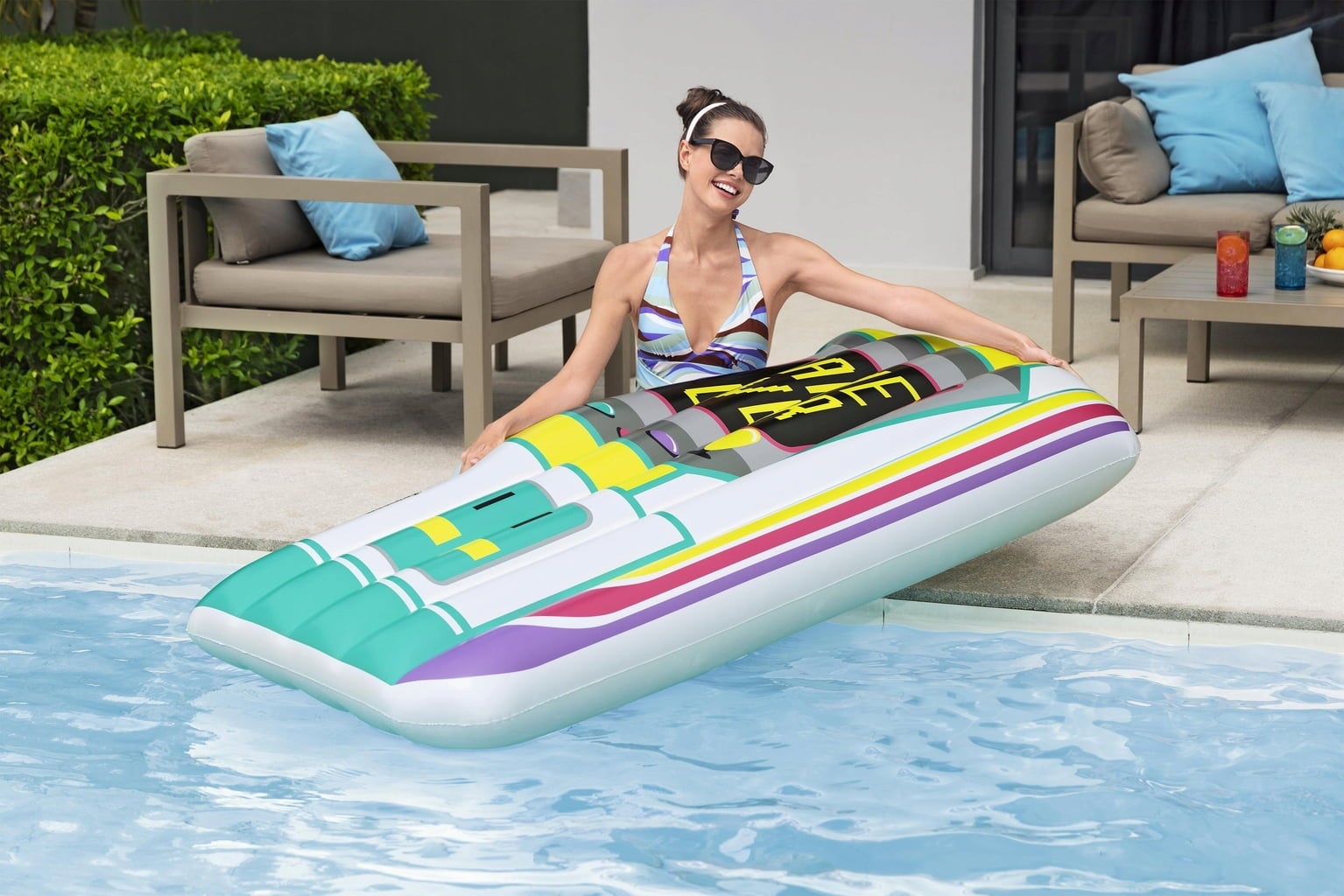 Det slitstarka materialet, I-Beam-konstruktionen och två separata luftkamrar gör att du kan luta dig tillbaka och koppla av. Madrassen har en maxvikt på 100 kg och ger dig den komfort du behöver. Tack vare den innovativa Color Shield™-beläggningen förblir färgerna starka och levande – den skyddar mot både blekning och avfärgning. Perfekt för dig som vill sticka ut i poolen!