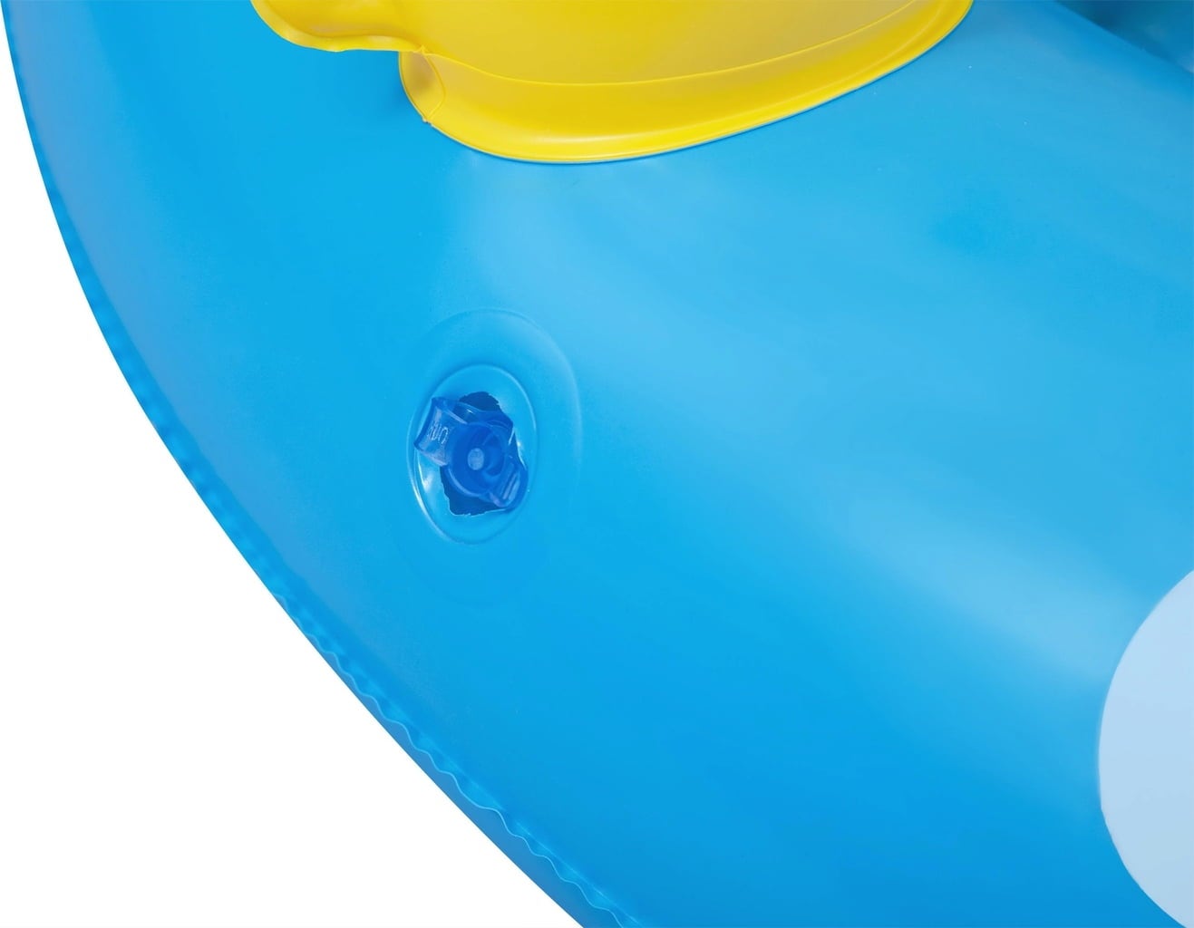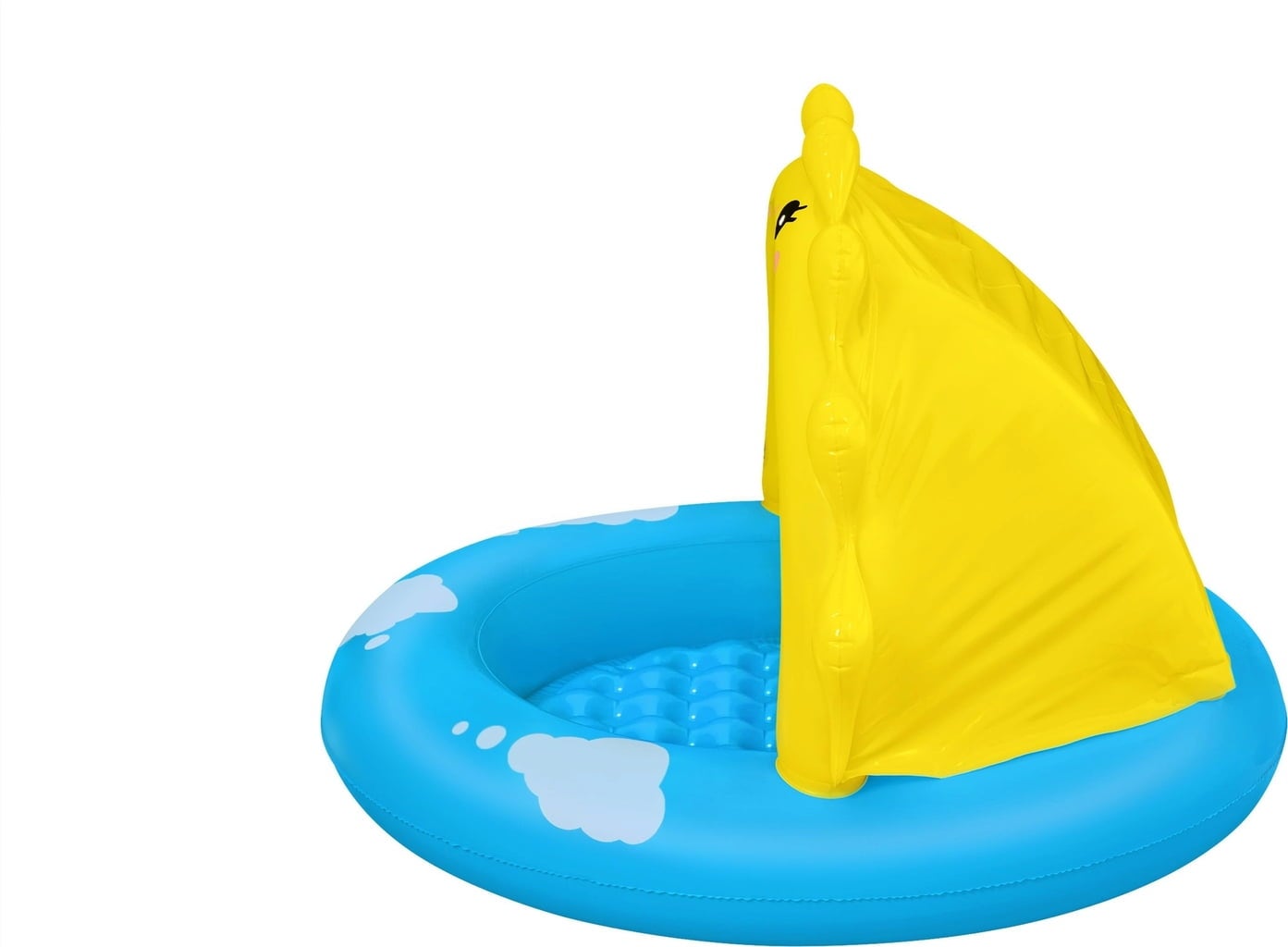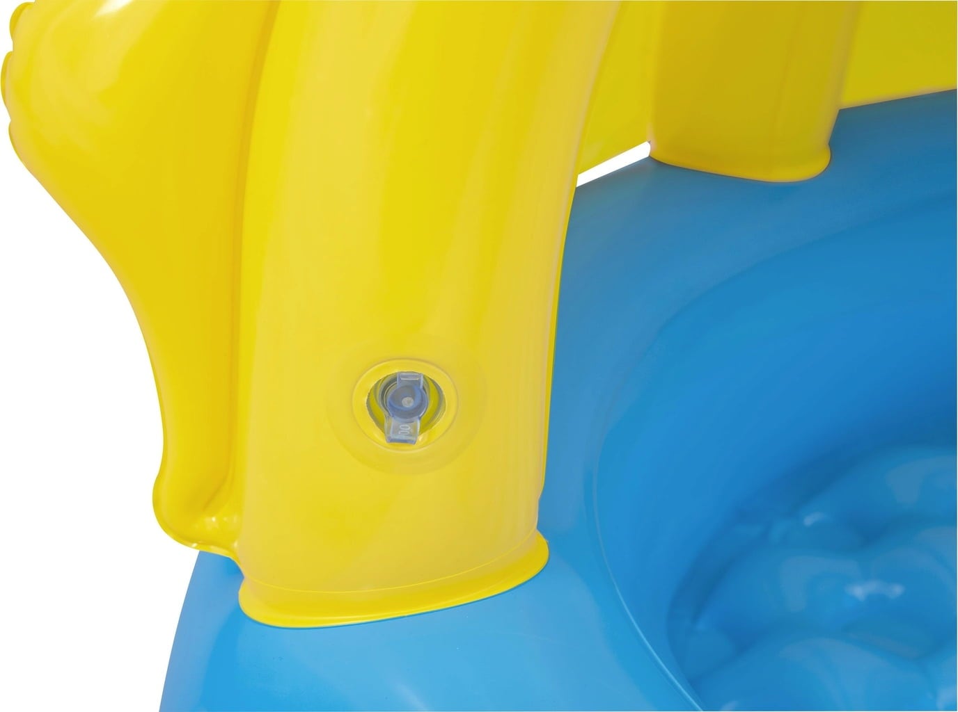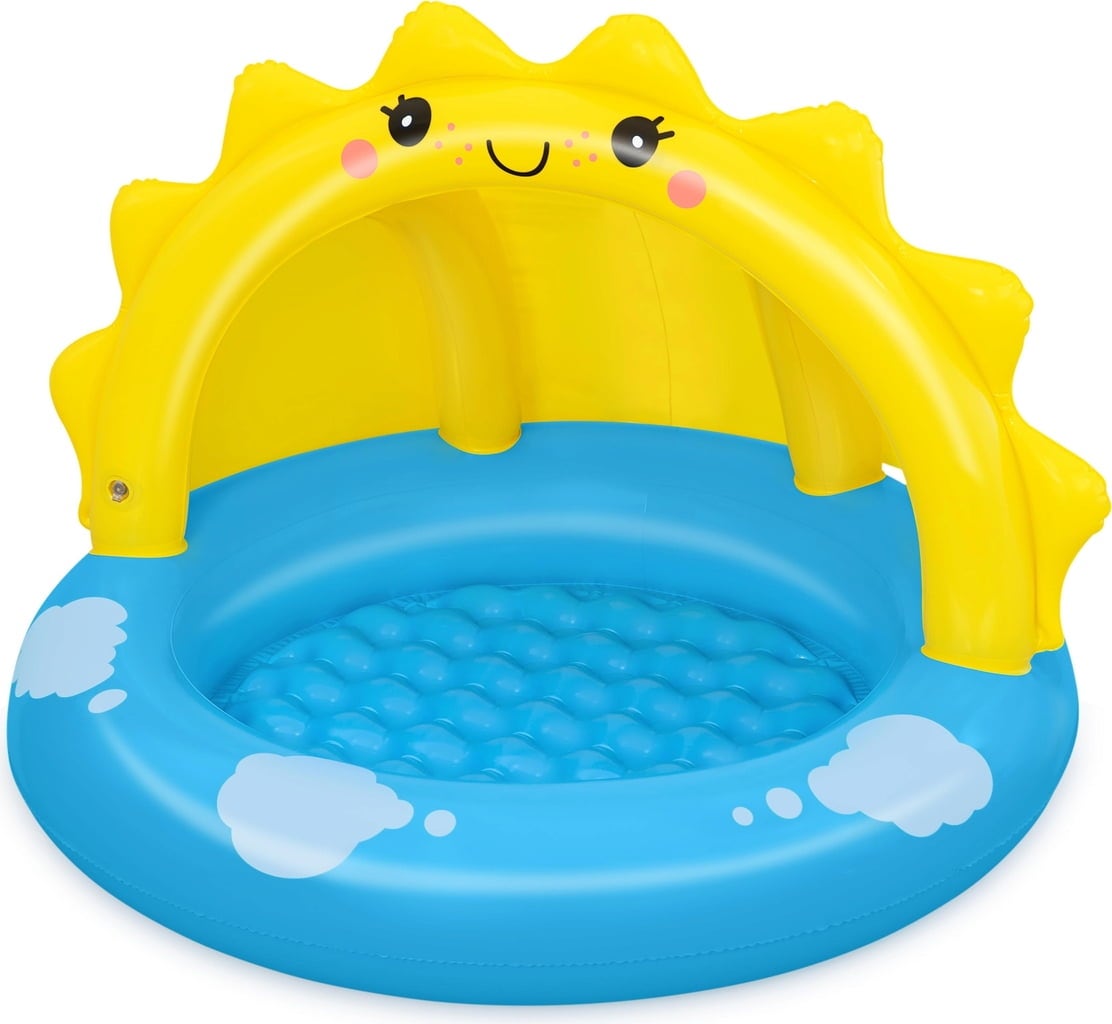 Den här plaskpoolen är perfekt för små upptäckare från två år. Med sina mått på 101 x 97 x 71 cm finns det gott om plats för lekfullt plaskande! Det söta soltemat sprider glädje och gör poolen till en favoritplats i trädgården. Ett extra plus är det uppblåsbara UV Careful™ solskyddstaket, som ger skön skugga och skyddar mot solen.