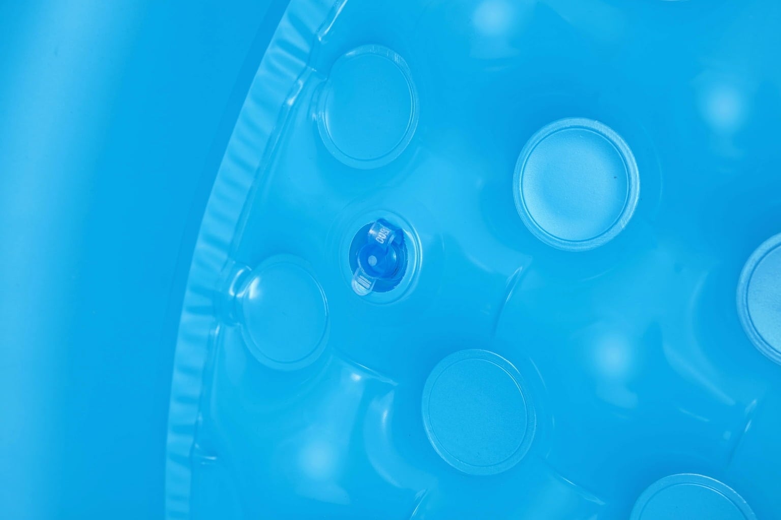 Den mjuka, uppblåsbara botten gör det extra bekvämt och roligt att leka i vattnet. Här kan barnen riktigt njuta av svalkan! Med en vattenkapacitet på 26 liter är poolen en härlig uppfriskning under varma dagar. Och för att undvika att små missöden förstör nöjet, medföljer reparationslappar.