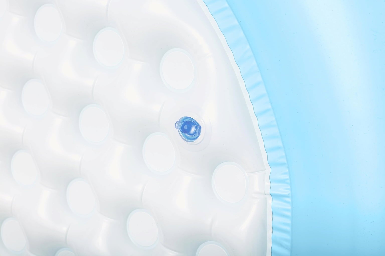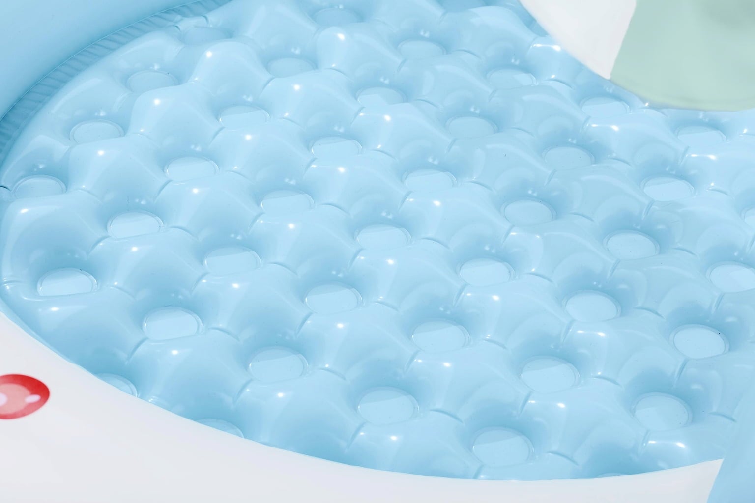 Det bästa? Det uppblåsbara UV Careful™ solskyddstaket. Det ger skön skugga och skyddar de små mot solen. För ännu mer komfort har poolen en mjuk, uppblåsbar botten där barnen kan leka och plaska hur mycket de vill! Och om något skulle gå sönder, ingår reparationslappar för snabb fix.