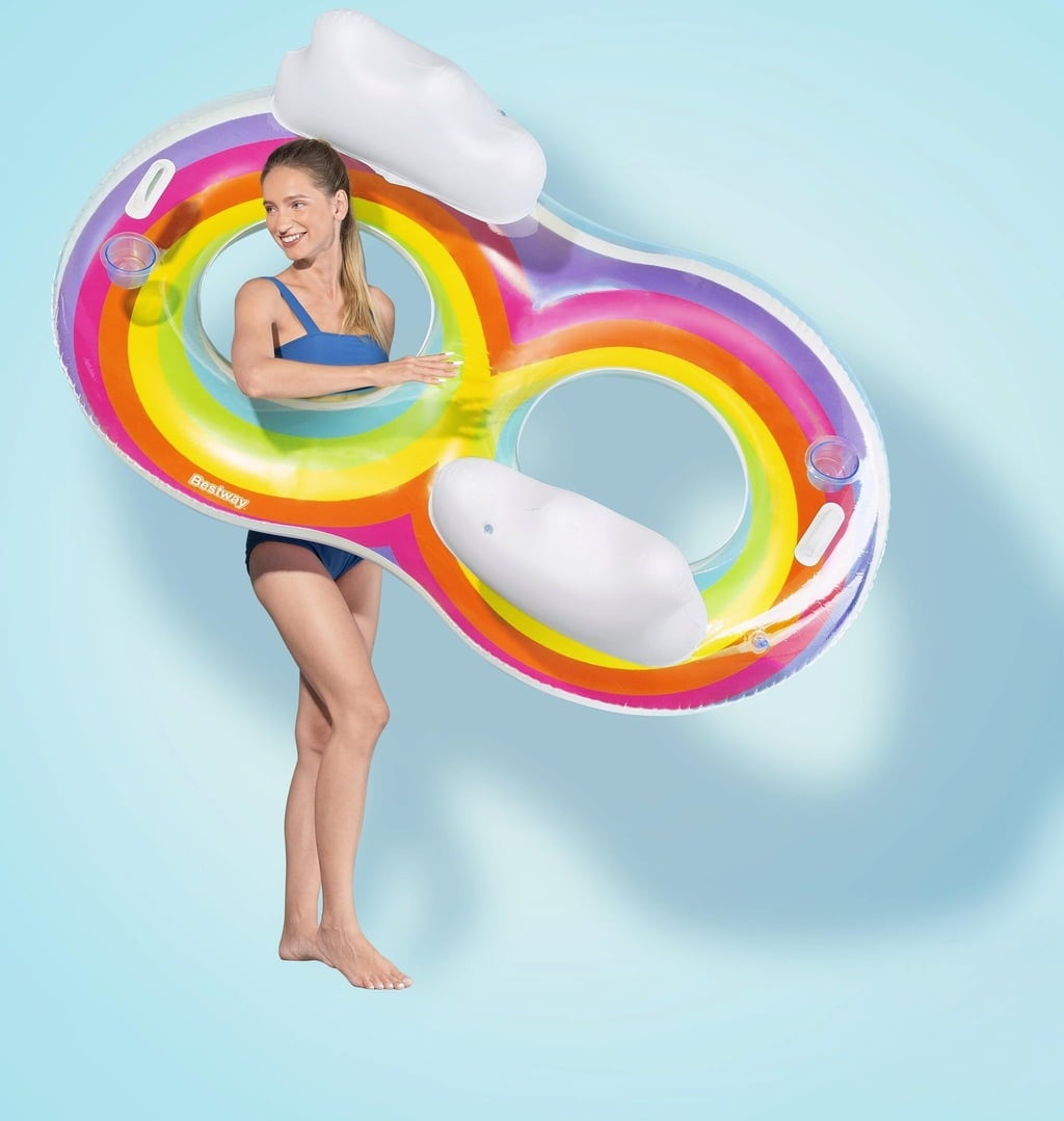 Bestway Rainbow Dreams Simring för 2 Personer med Nackstöd 186 x 116 cm