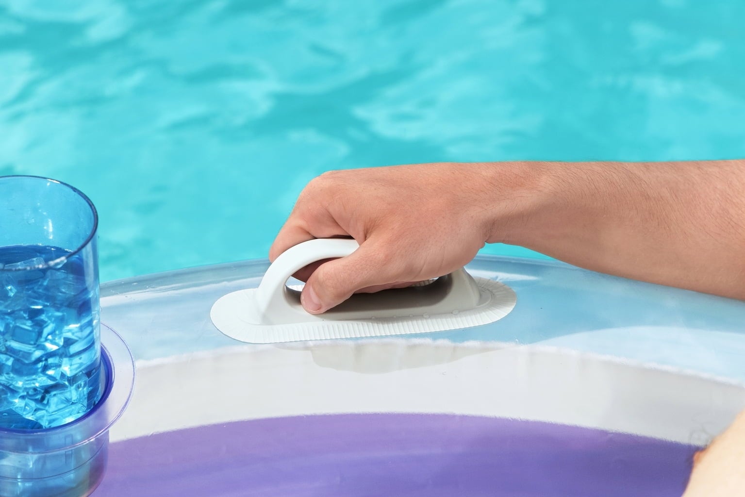 För att ni ska kunna slappna av fullt ut ger stabila handtag säkerhet och stadga. Tack vare de inbyggda mugghållarna har ni alltid dryckerna nära till hands. Oavsett om det är i poolen, vid sjön eller i havet – med denna badring skapar ni oförglömliga sommarminnen tillsammans.