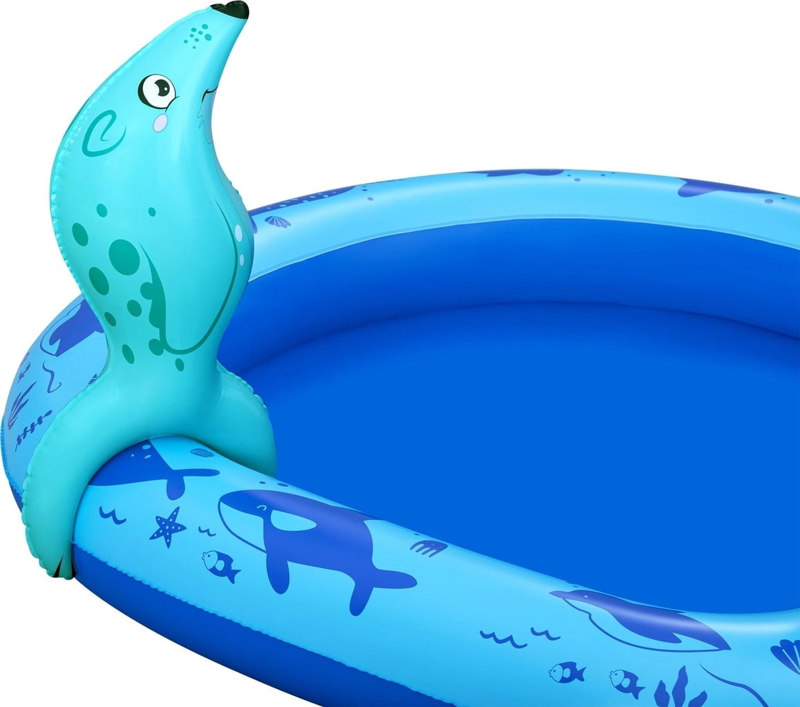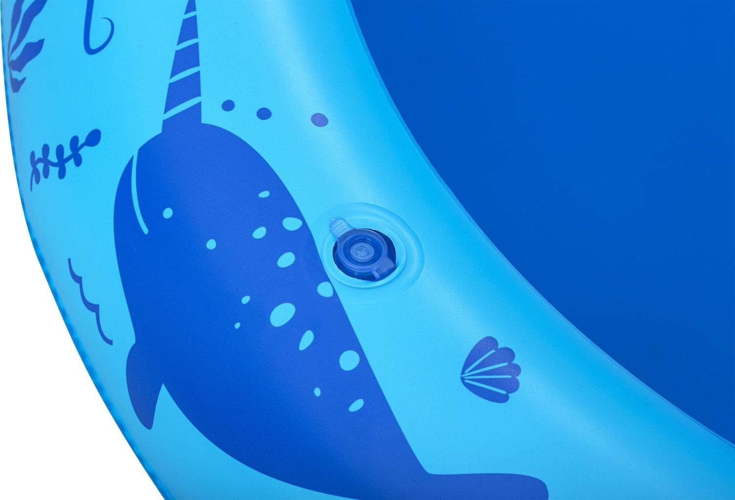 Med Bestway vattenspelcenter Polar Pals™ får du Antarktis direkt hem! Detta lekfulla plaskdamm bjuder på massor av utrymme för timmar av vattenlek. Det gulliga Antarktis-temat med narval, säl och pingvin inspirerar till fantasifull lek och får barnhjärtan att smälta. Narvalens horn och sälens nos fungerar som roliga ringkastningsspel där barnen får träna sin precision. Två skumgummifiskar ger extra lekskoj – de kan både glida i vattnet och stoppas i pingvinens mun.