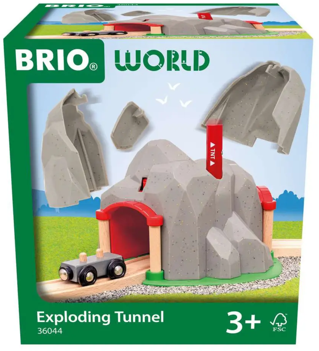 BUMM! Med den här tunneln blir varje BRIO World-äventyr ännu mer spännande. Placera TNT-laddningen i bergöppningen och se hur tunneln "exploderar" och avslöjar en hemlig passage. Den realistiska stenlooken och stabila konstruktionen gör den till en hållbar favorit i leken. Enkel att kombinera med andra BRIO World-set och perfekt för att utveckla barnens finmotorik och kreativitet.