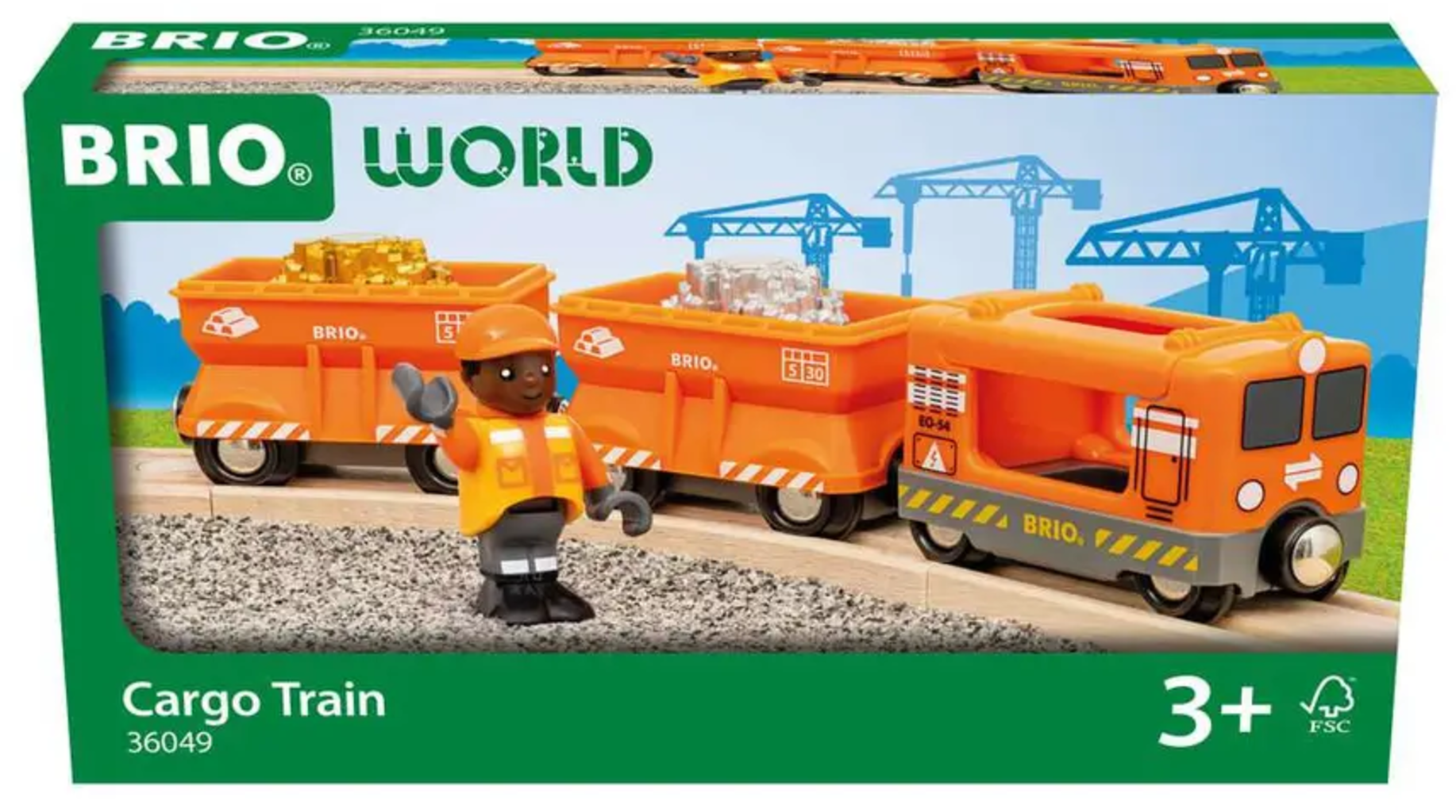 Transportera guld- och silverskatter med det klart orangea godståget! Barnen sätter figuren i förarsätet, kör iväg på rälsen och upplever spännande rollspel. Setet är fullt kompatibelt med andra BRIO World-tåg och uppmuntrar till lek som stärker finmotorik och kreativt tänkande.