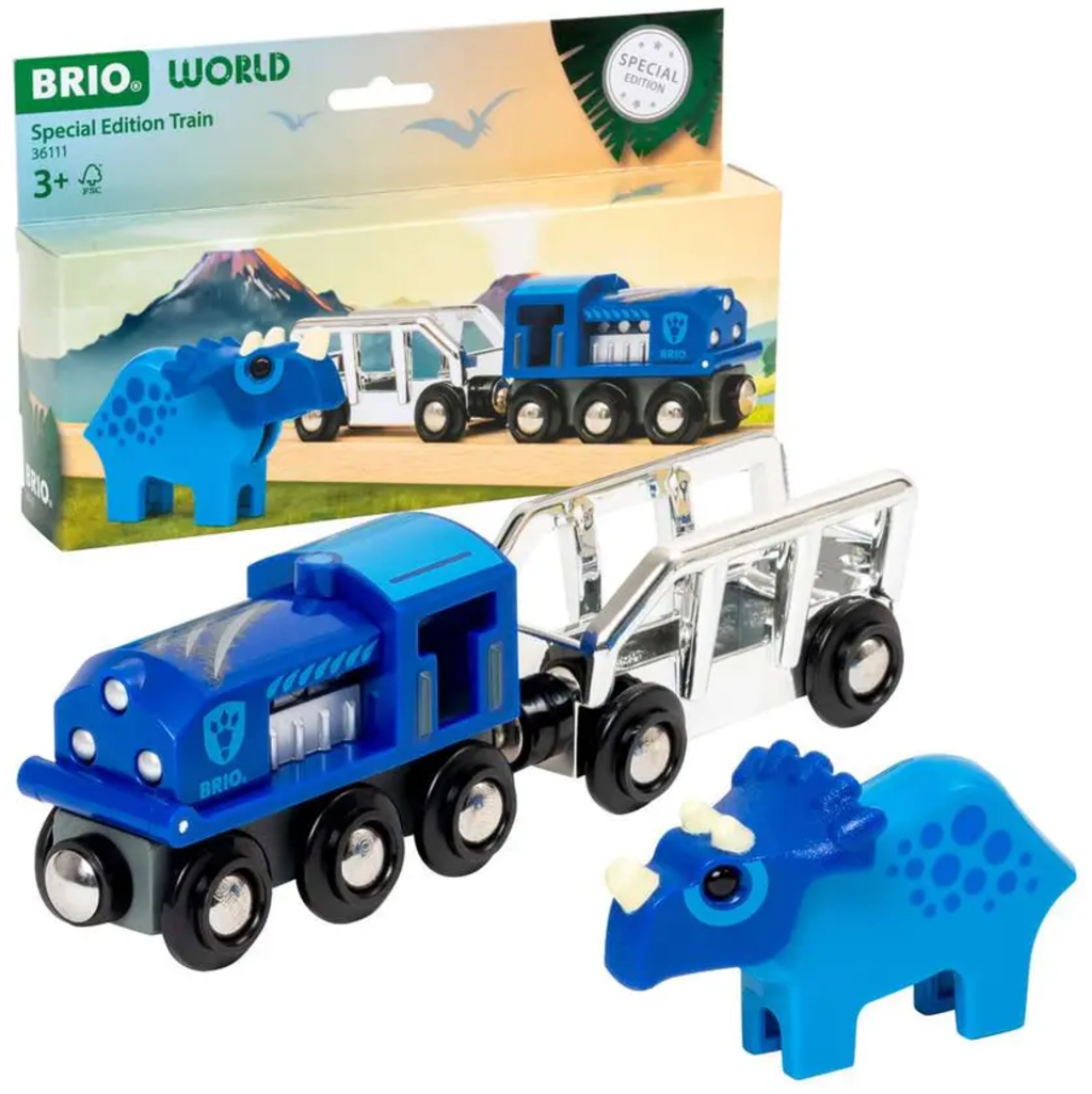 Klar för en alldeles speciell tågresa? Det blå-silverfärgade specialutgåvetåget med häftigt dinosaurietema bjuder på massor av leklust och fantasi. Ett riktigt blickfång för små upptäckare och stora BRIO-entusiaster!
