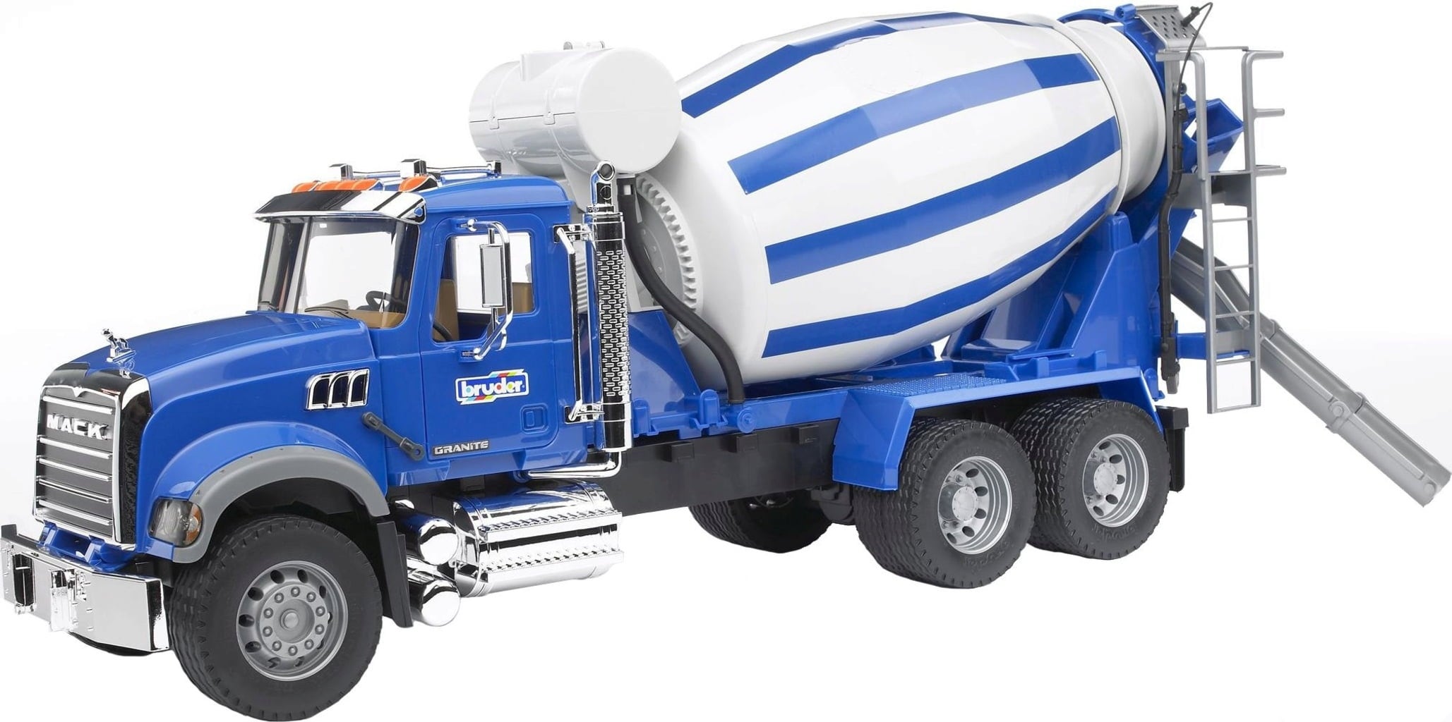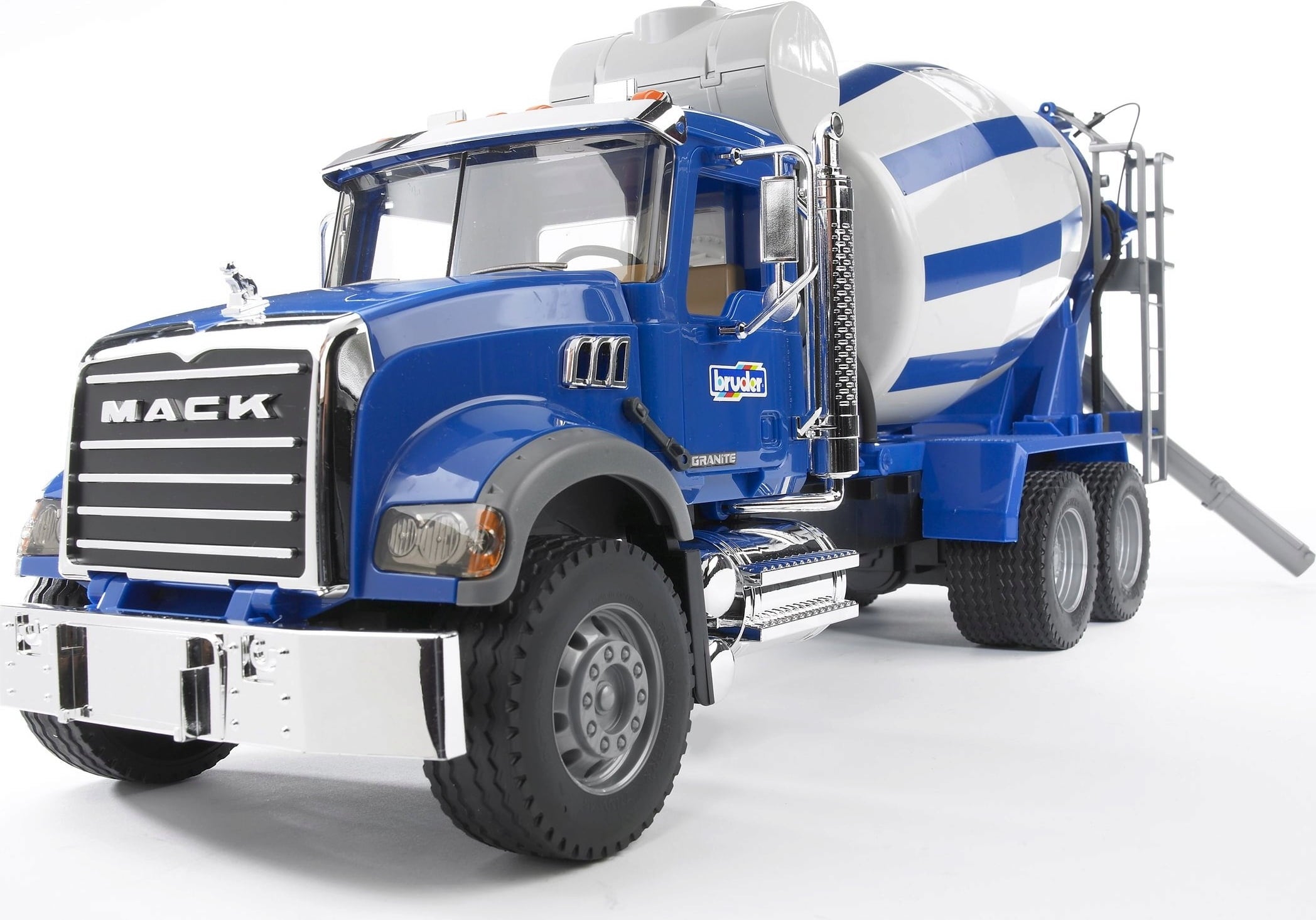 MACK Granite betongblandarbil är ett måste för alla leksaksbyggarbetsplatser. Det realistiskt utformade fordonet kombinerar den robusta estetiken hos den amerikanska MACK-lastbilen med en fullt fungerande blandningstrumma som skapar en verklig byggkänsla.
