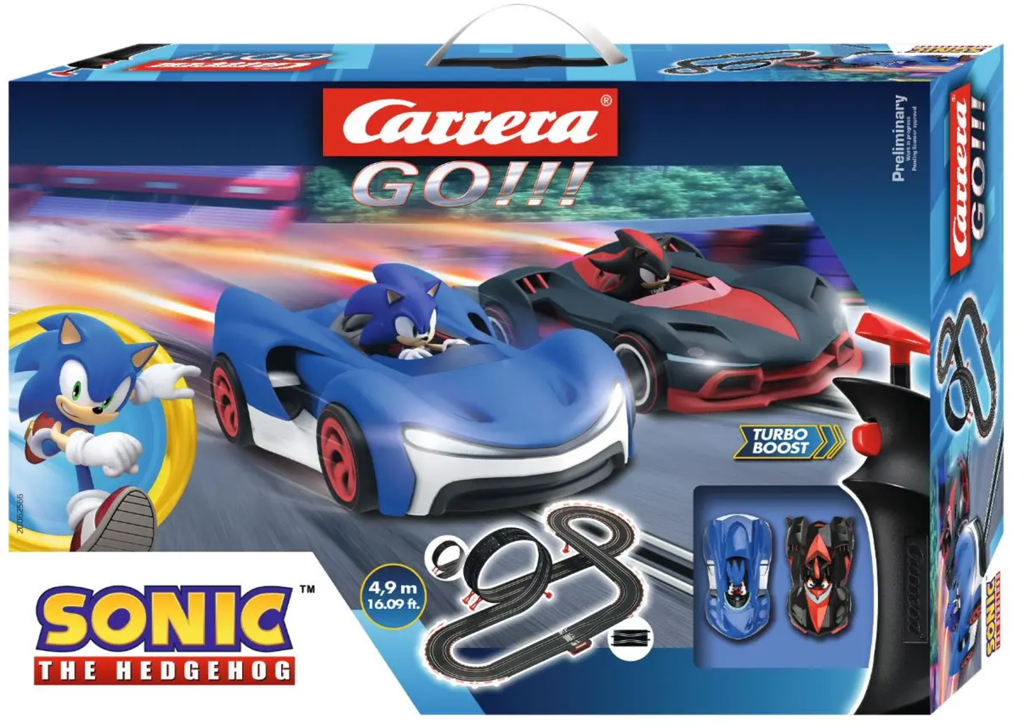 Carrera GO!!! "Sonic the Hedgehog" 4.9 Startset tar med sig världens snabbaste igelkotts äventyr direkt in i barnrummet. Tävla med Sonic och hans rival Shadow runt den spännande banan med loopar och kurvor. Heroisk racingaction garanteras.