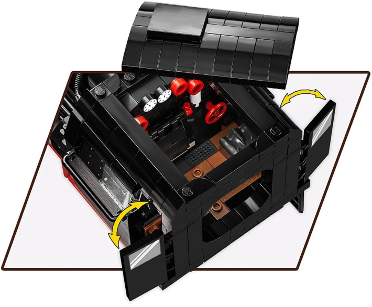 Upplev inspirerande ingenjörskonst: Skjut loket och se hur den komplexa länkmekanismen och alla hjul rör sig, precis som på riktigt, tack vare den autentiska växellådan. Ta bort taket för att upptäcka den detaljerade hytten med sin glödande panna. Tack vare de 65 cm långa spåren som ingår, med sitt realistiska träutseende, är din bana redo för sin första körning. Bygg ditt eget järnvägsimperium, tegelsten för tegelsten!