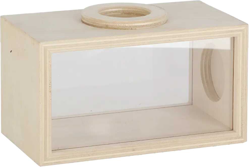 Denna låda är perfekt för att observera och studera insekter på nära håll utan att skada dem. Två förstoringsglas med tre- respektive femfaldig förstoring gör det möjligt att se även små detaljer och ger en fascinerande inblick i insekternas värld.