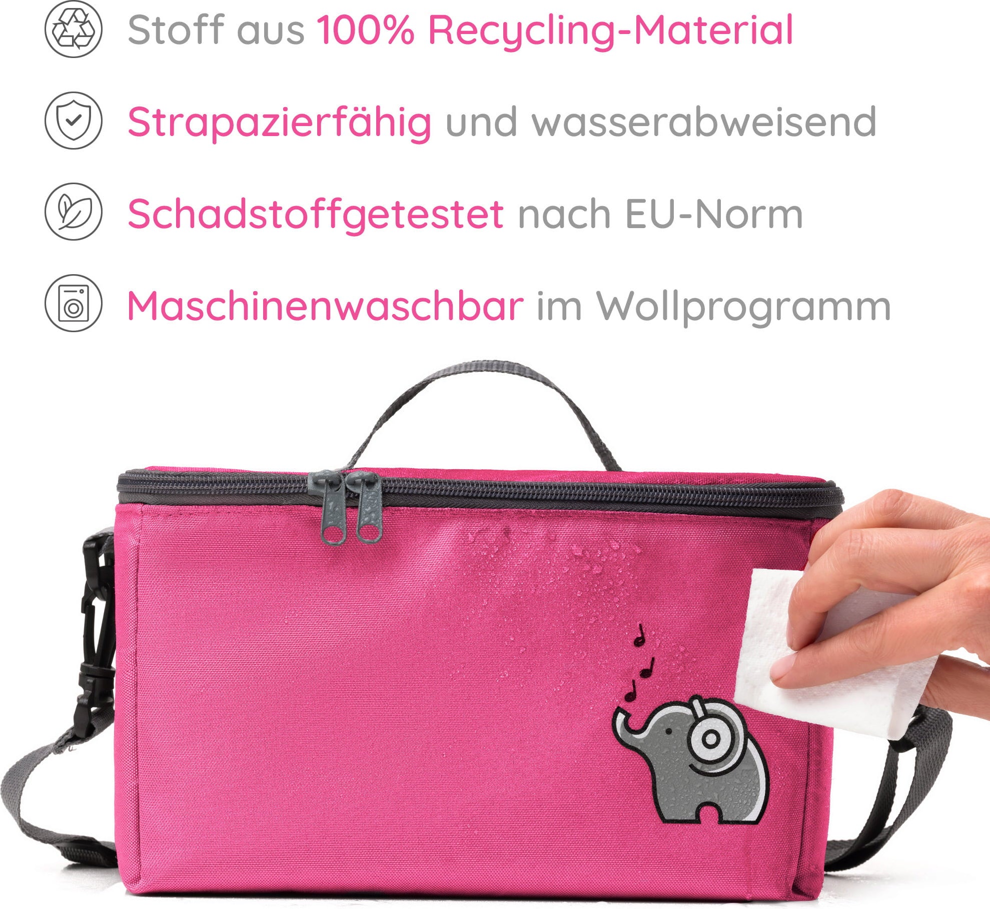 | Vårdråd: | Skrynklor på väskan och axelremmen kan tas bort genom strykning. Använd endast den lägsta temperaturinställningen och placera en bit bakplåtspapper mellan väskan och strykjärnet. |