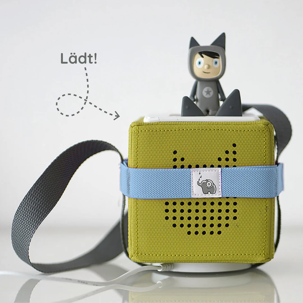 Alltid allt under kontroll - med denna praktiska bärenhet kunde transporten av Toniebox inte vara enklare. Dina favoritkaraktärer är säkert fästa i de 8 remmarna. Den robusta bärremmen är precis i rätt storlek för barn. Och eftersom saker och ting måste göras snabbt i en nödsituation behöver lådan inte packas upp från bärenheten för att kunna använda eller ladda den.
