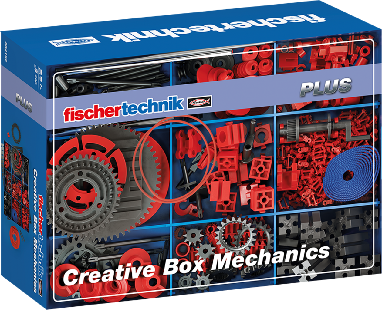 Creative Box Mechanics introducerar barn från 7 år till mekanikens grunder. Med kugghjul, axlar och drivdelar kan olika typer av växlar och tekniska funktioner byggas, antingen enligt instruktion eller helt fritt.