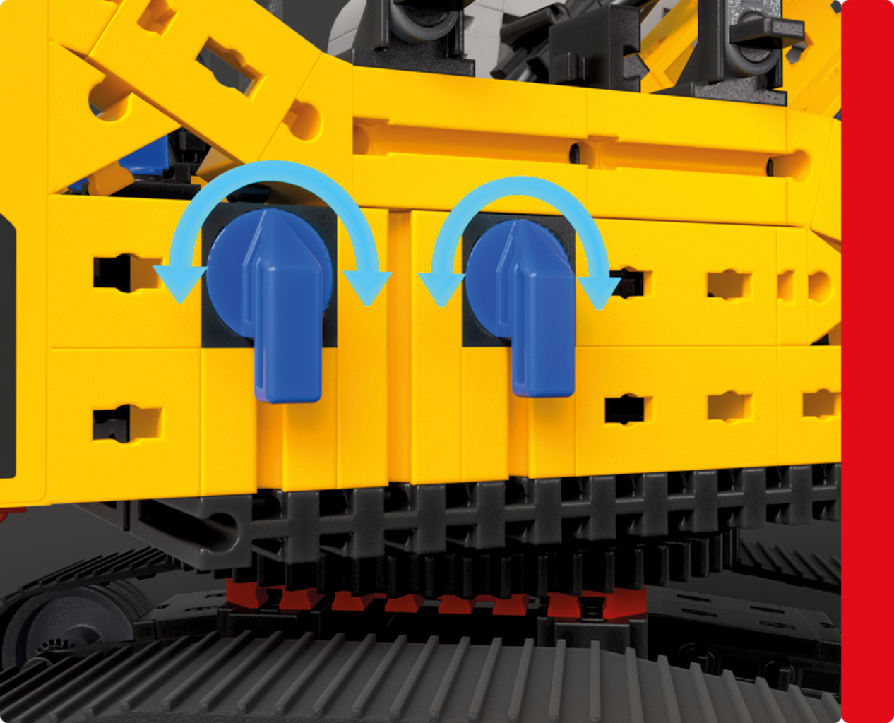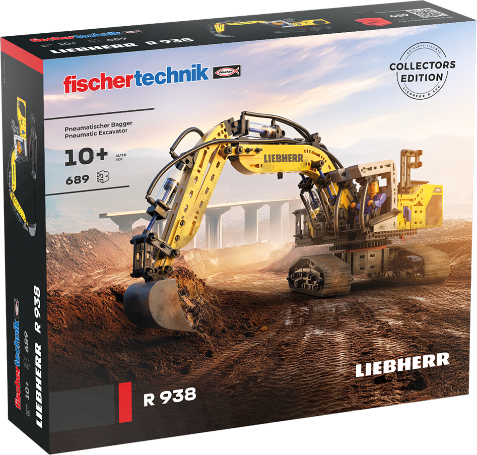 Med den pneumatiska grävmaskinen Liebherr R 938 får du uppleva kraften i pneumatik på nära håll. Med hjälp av kompressor, handventiler och finjusterbart luftflöde kan du styra realistiska rörelser. Precis som hos en riktig hydraulisk grävmaskin. Den här modellen är perfekt för barn och teknikintresserade som vill kombinera byggande, teknik och kreativitet. Ett verklighetstroget, lärorikt och roligt byggprojekt för blivande ingenjörer och byggproffs!
