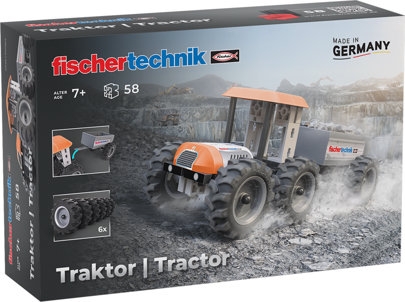 Fischertechnik-traktorn levererar kraft och mångsidighet direkt till byggarbetsplatsen! Barn bygger enkelt ihop traktorn och kan direkt börja transportera material. Med robusta delar, stora hjul och en praktisk släpvagn blir varje byggprojekt ett spännande äventyr. Perfekt för unga teknikfans som gillar action, konstruktion och kreativ lek!
