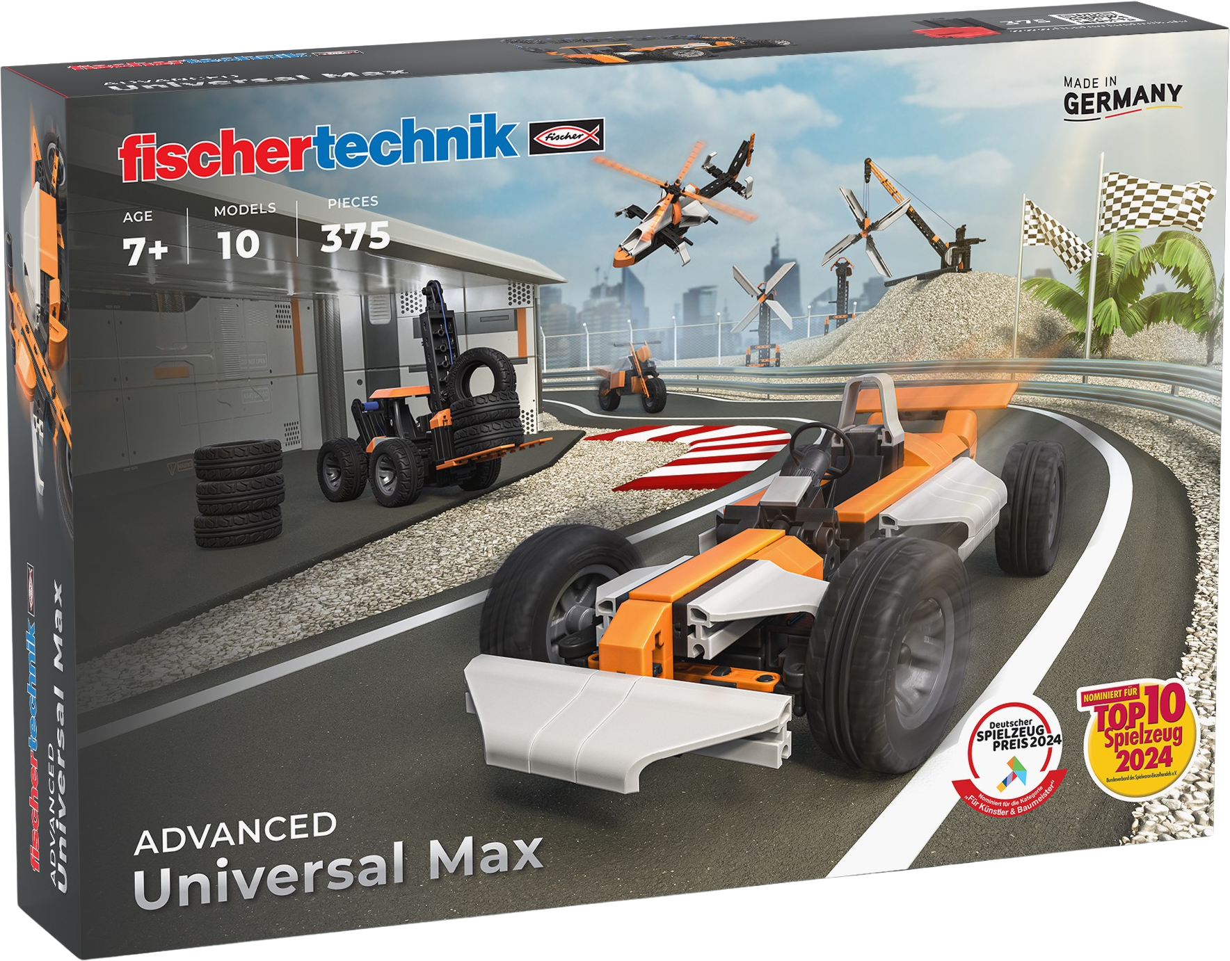 Med fischertechnik ADVANCED Universal Max kliver barn in i teknikens värld och upptäcker grundläggande tekniska principer på ett lekfullt sätt. Från racerbilar till helikoptrar och griparmar. Varje modell uppmuntrar till konstruktion, experiment och kreativitet. De mångsidiga byggdelarna i nya färger och former ger oändlig bygg- och lekgädje, samtidigt som barn utvecklar finmotorik, problemlösning och teknikförståelse. Perfekt för små ingenjörer som vill uppleva teknik på riktigt!