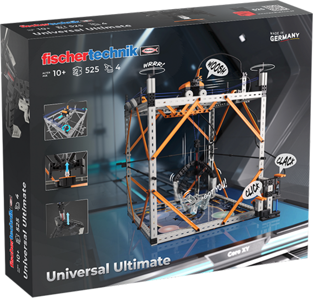 Med fischertechnik Universal Ultimate får barn dyka ner i teknikens fascinerande värld. Det största setet i Universal-serien gör det möjligt att bygga imponerande kinematiska modeller som gripautomat eller tripod-grip. Två pneumatikcylindrar och sugkoppar ger liv åt modellerna – helt utan motor! Setet innehåller många stora byggdelar och uppmuntrar till lek, byggtävlingar och teknisk utforskning. Kreativitet möter lärorik teknik. Perfekt för alla unga ingenjörer och teknikentusiaster!