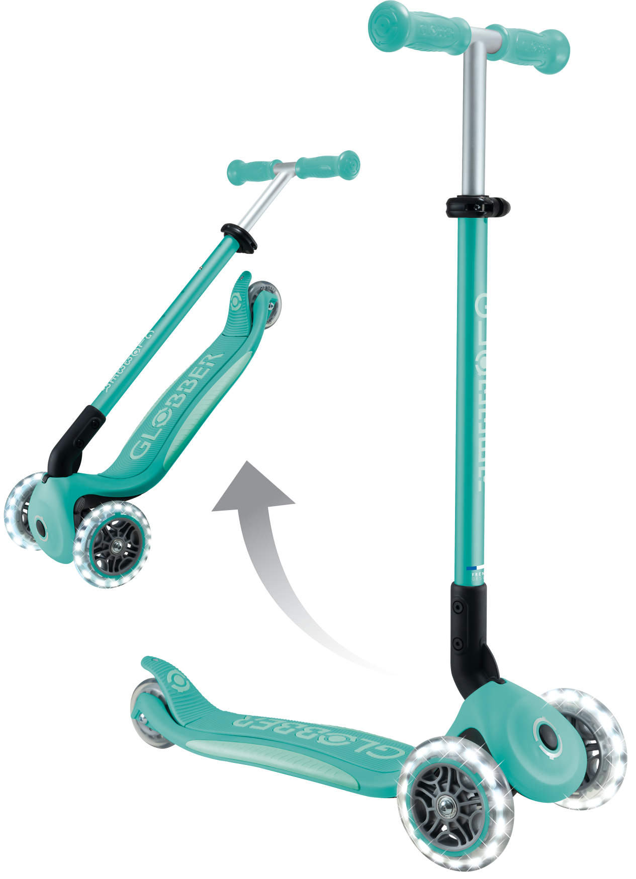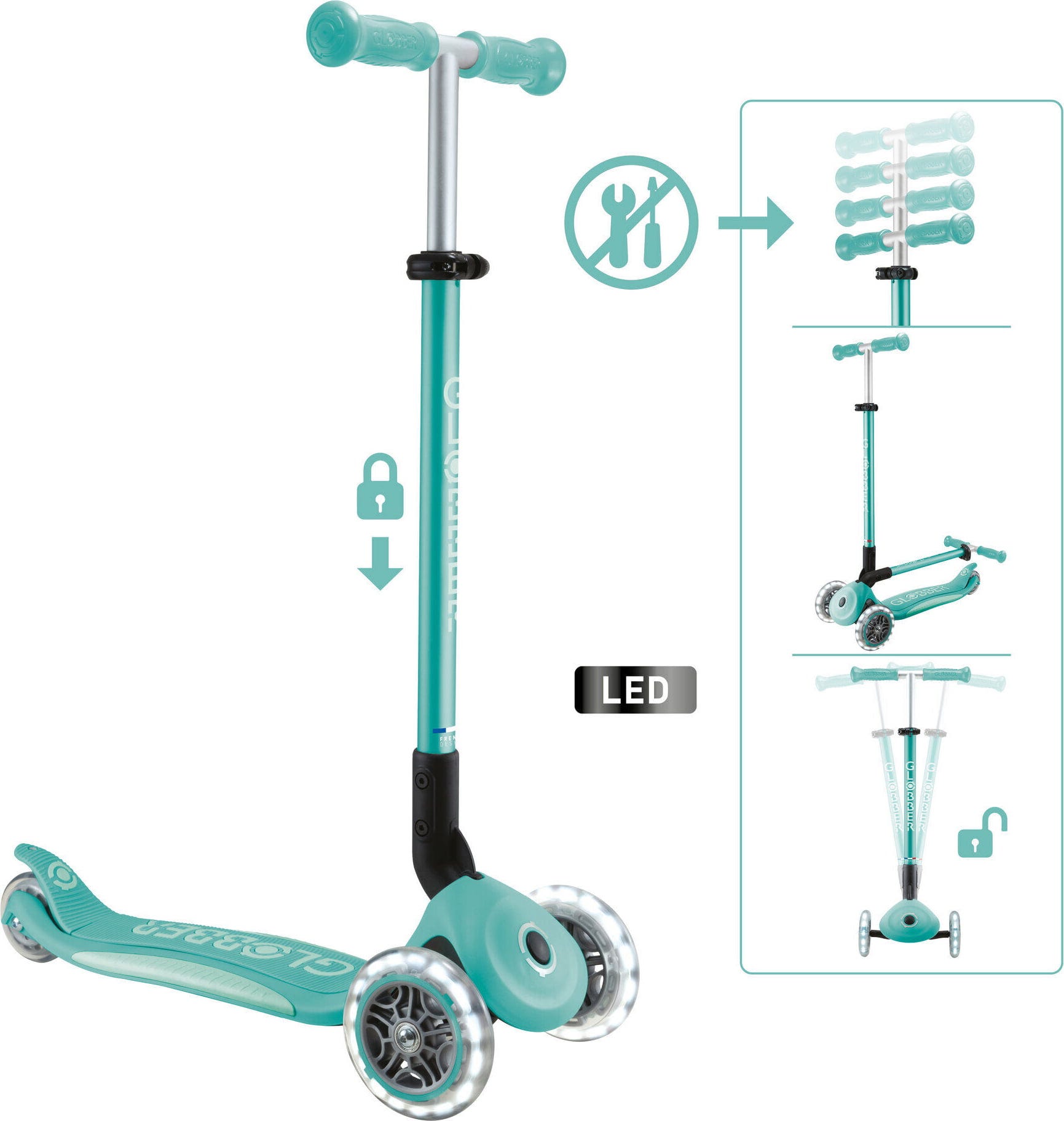 Globber Scooter Primo Foldable Plus Lights, mörk mint-mint
