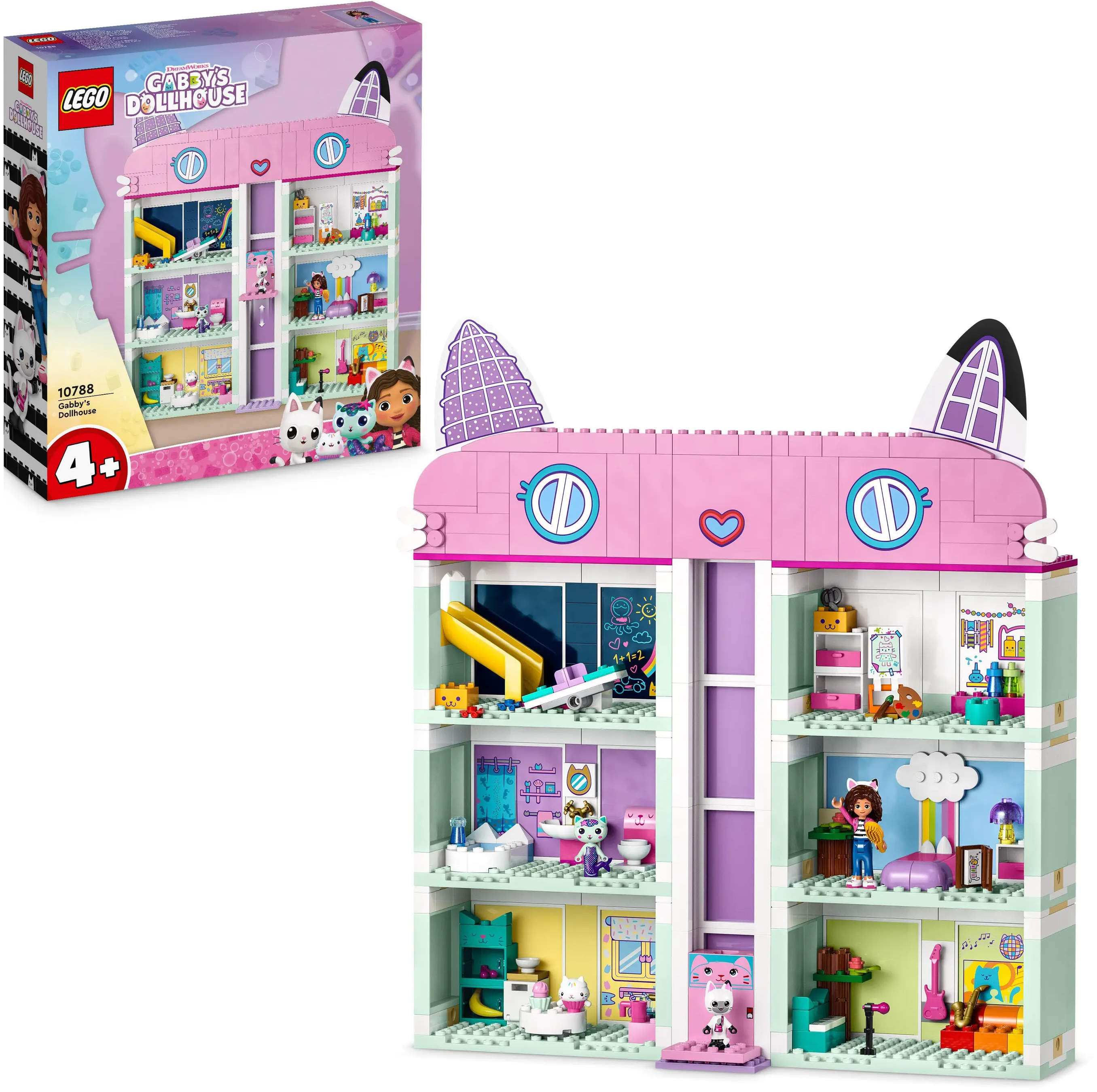 Barn från 4 år och uppåt kan fördjupa sig i sin hjältinna Gabbys värld med detta flervåningshus från den populära TV-serien. Åtta färgglada rum och en rutschkana som leder från vinden till lekområdet inbjuder barn att leka med Gabby, Pandy Paws, Meerkat och Kuchi. Tack vare de stora startklossarna är monteringen enkel – vilket ger mer tid för lek.