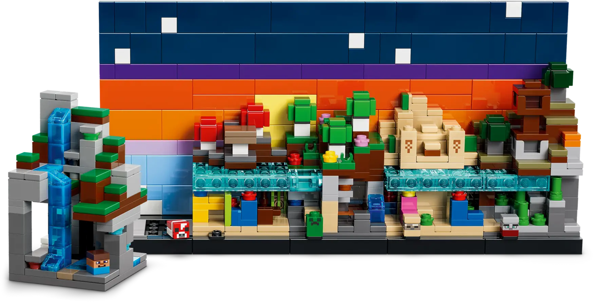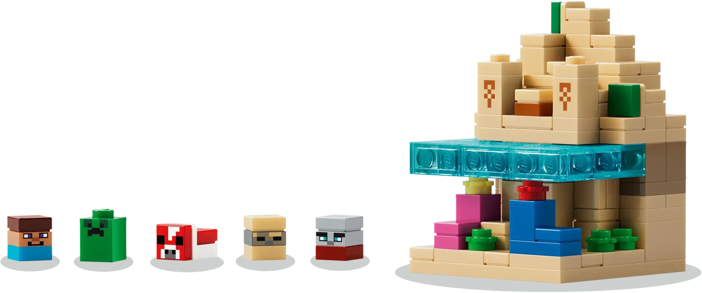 - Innehåller 5 mikrofigurer: Steve, Creeper™, Svampko, Ökenzombie, Raider