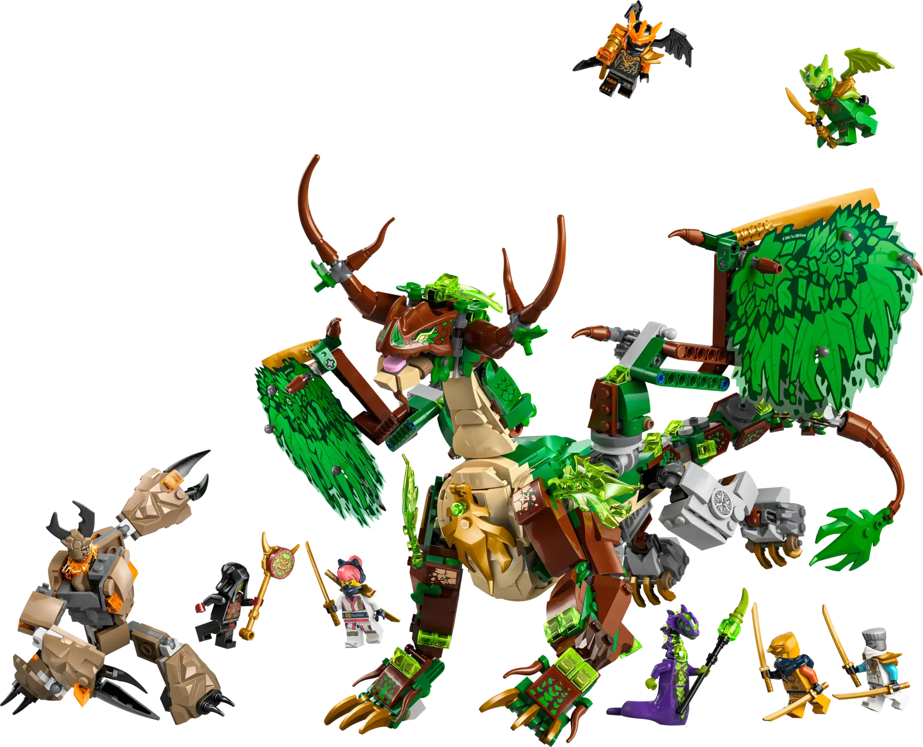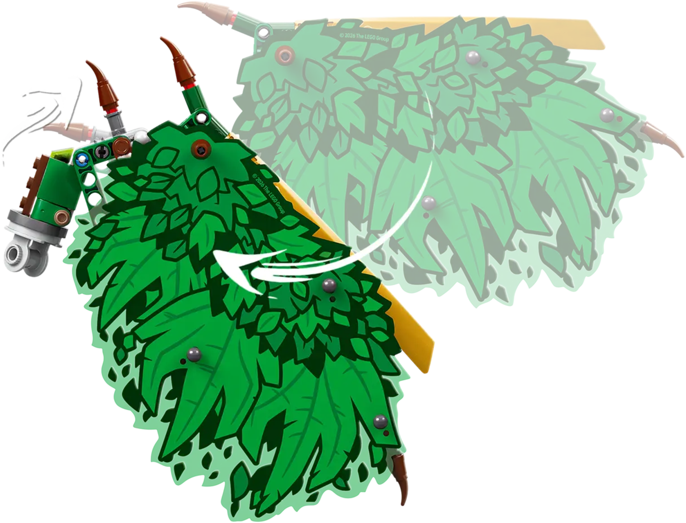 - Rörliga delar: vingar, käke, huvud, nacke, vrister, klor och svans Innehåller 8 minifigurer för fantasifull lek: Zane, Sora, Arin, Drakformade Lloyd, Drakformade Cole, Syramonster, Jordmonster, Lojalistledare Innehåller sadel för 1 minifigur