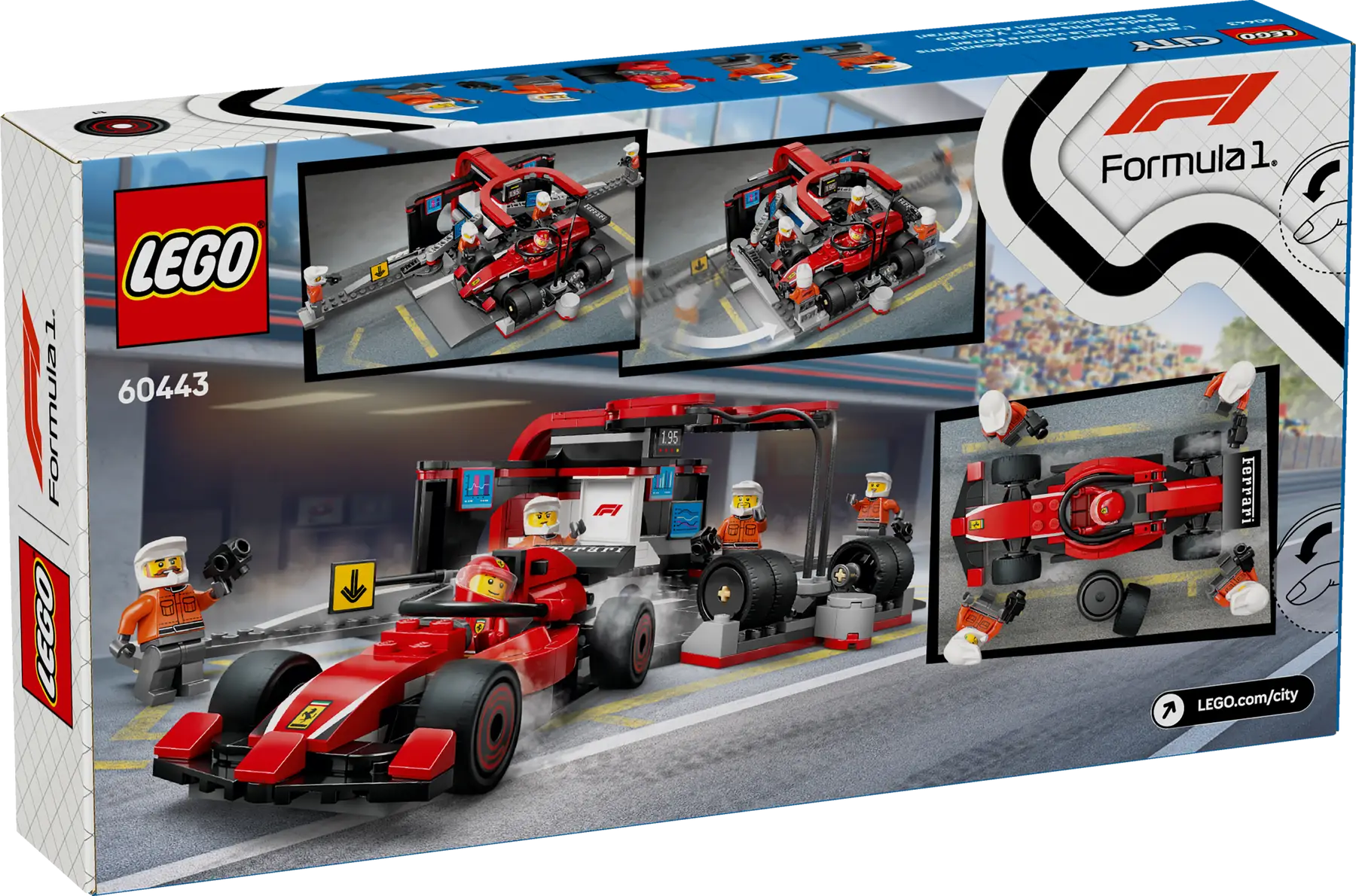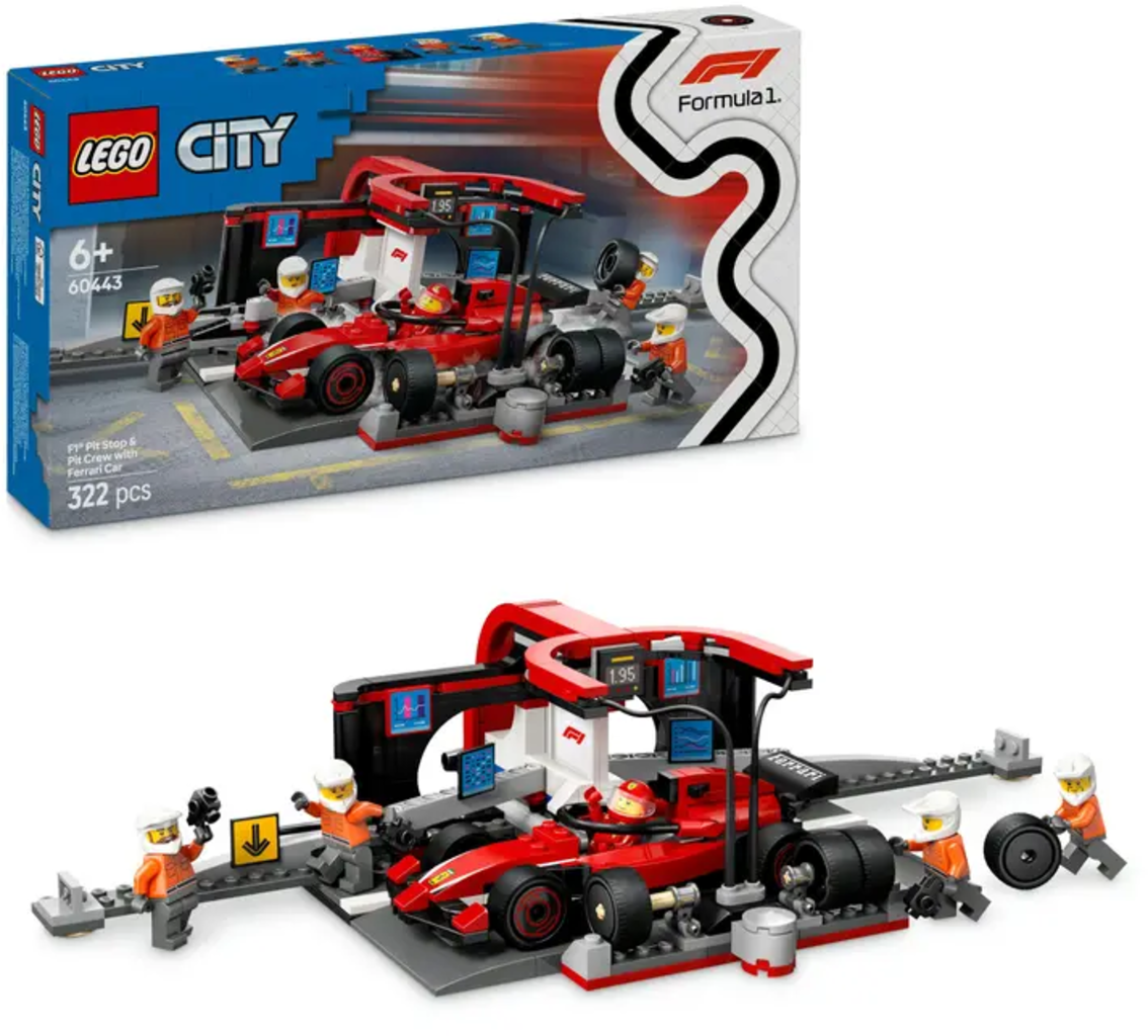 LEGO Stad - 60443 F1® depåstopp med depåpersonal och Ferrari-förare