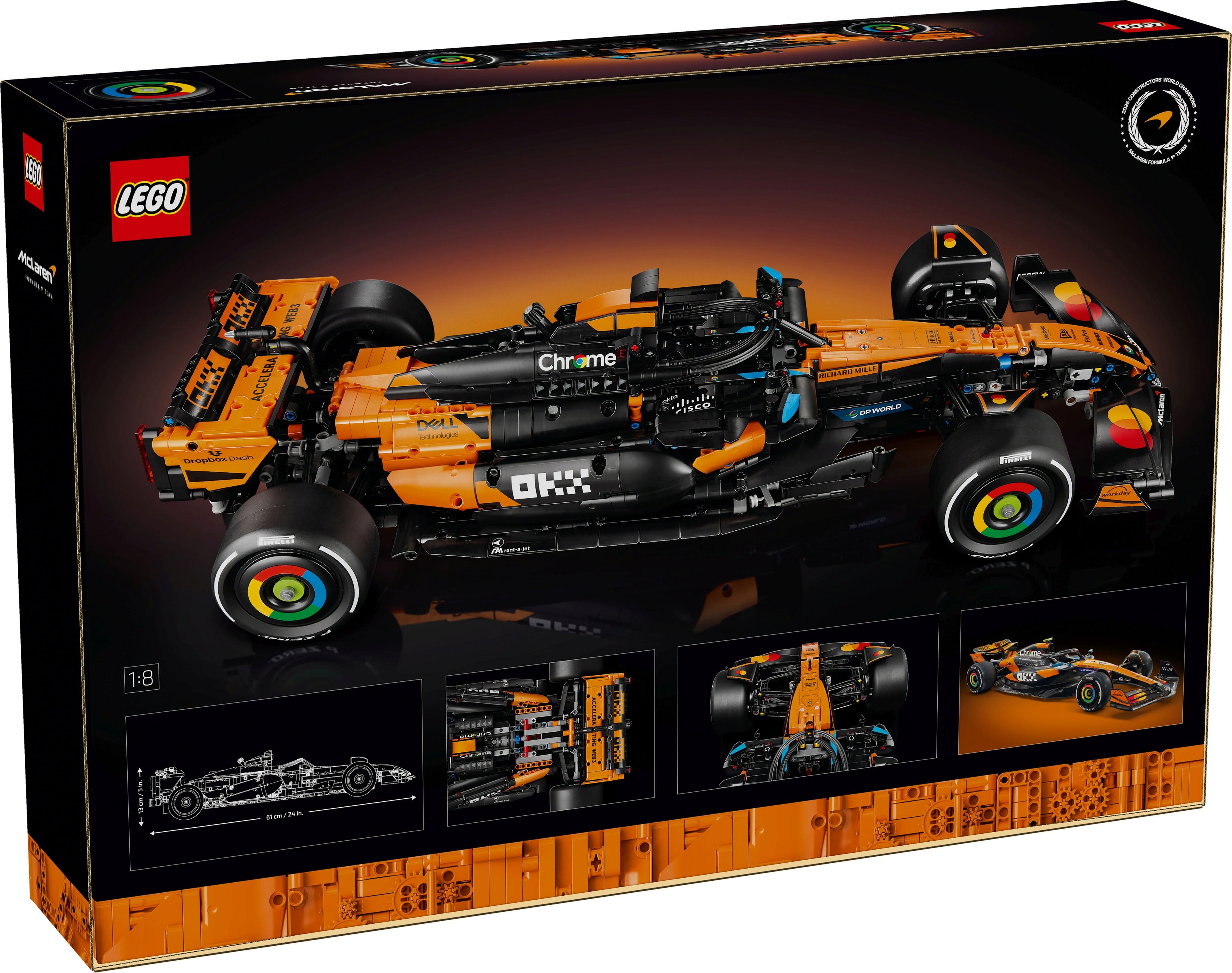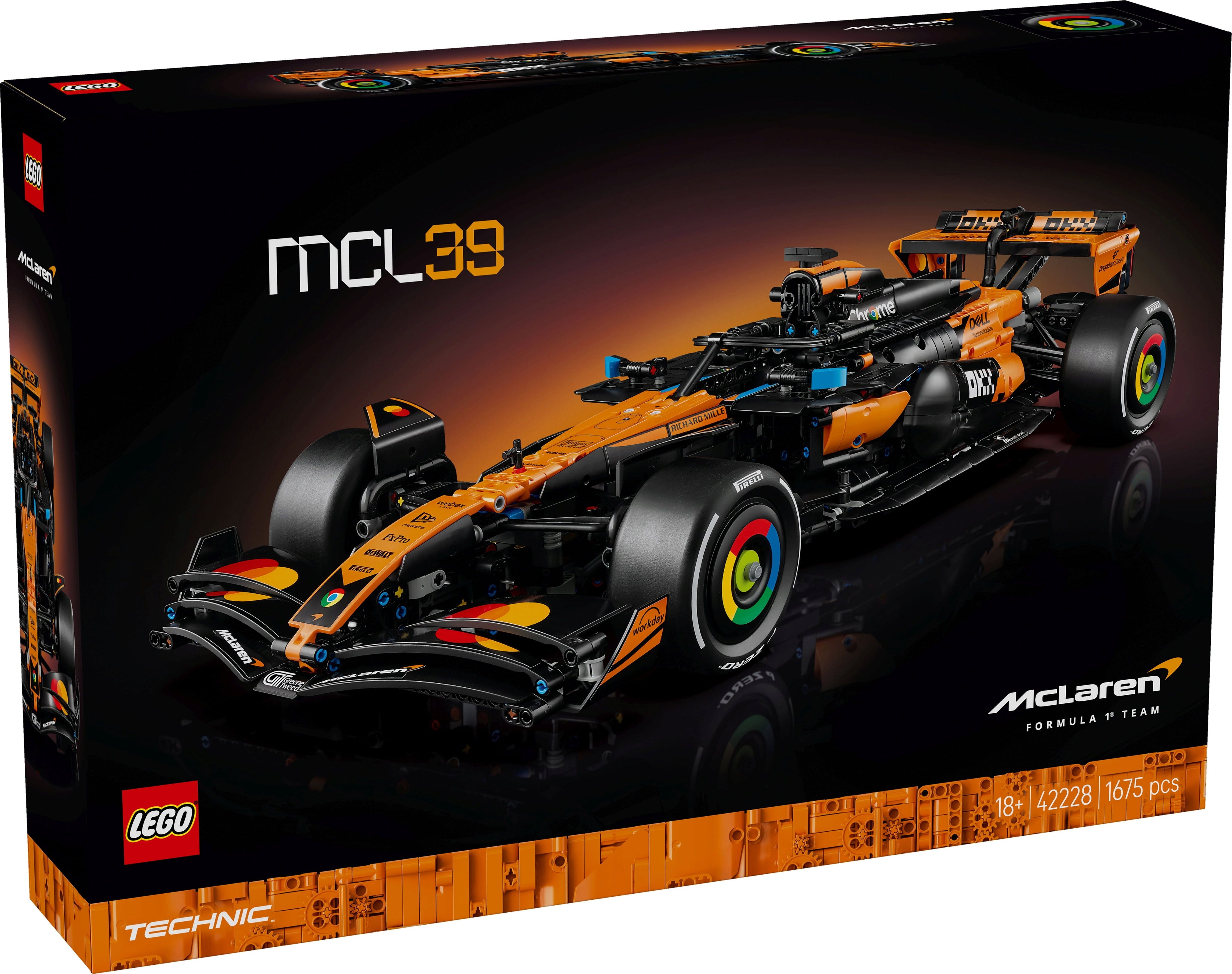 Den detaljrika LEGO Technic McLaren MCL39 F1-racerbilen får Formel 1-fans hjärtan att slå snabbare. Som byggset erbjuder den en utmanande och givande byggupplevelse och är en utmärkt presentidé. Med 1.675 bitar kan du bygga en modellbil i skala 1:8 med autentiska detaljer som pushrod/pullrod-hjulupphängning, styrning och differential, V6-motor samt DRS och 2-växlad växellåda.