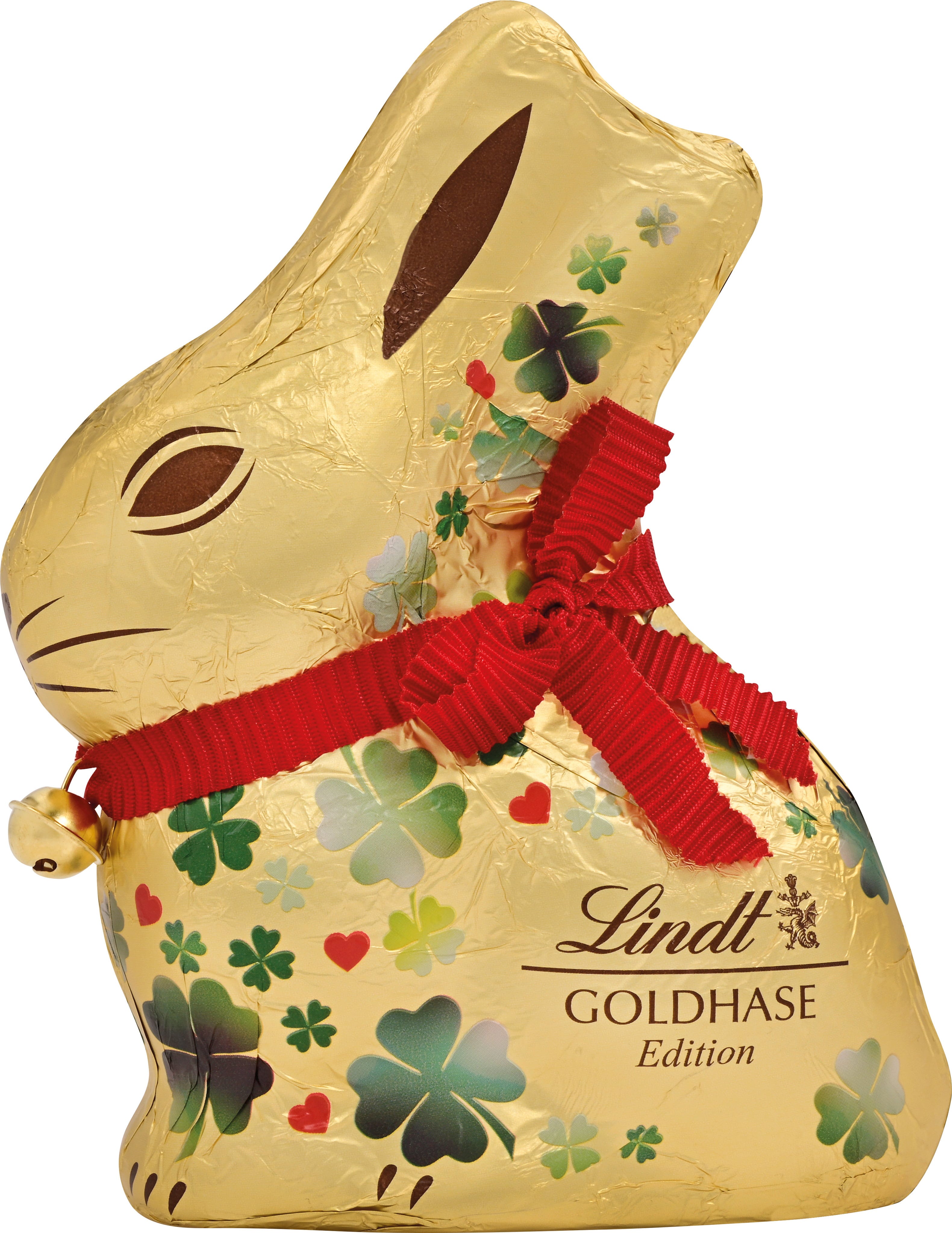 Med Lindt Guldkanin Lyckobringare Edition får du en extra dos glädje direkt hem. Du njuter av den klassiska kombinationen av len alpmjölkchoklad, det ikoniska röda bandet och den lilla klockan. Det festliga foliet med små fyrklöver gör denna favorit till ett lyckobringande blickfång som förgyller ditt påskbo.