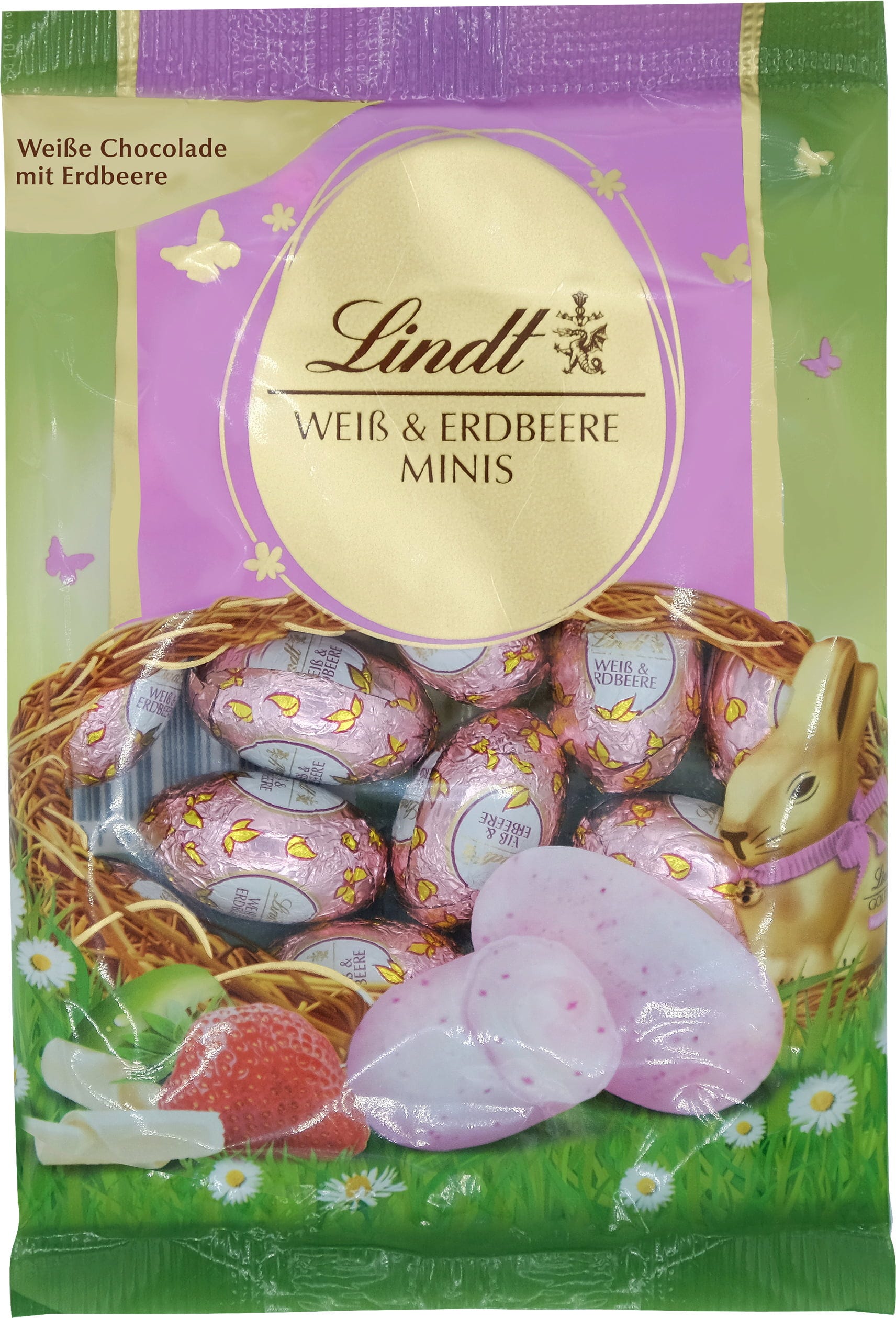 Vit choklad med jordgubbssmak - jordgubbsäggen från Lindt ger fruktig variation till varje påskbo. De söta äggen är också en underbar dekoration på påskbordet och kommer garanterat att glädja både små och stora chokladfantaster.