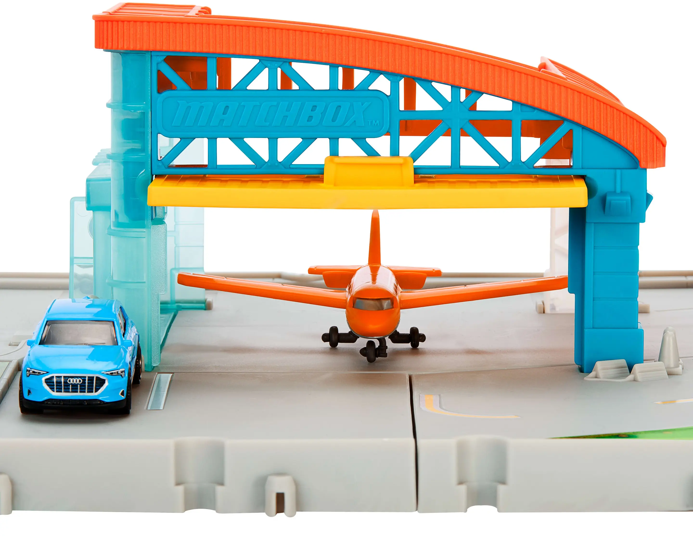 Matchbox Flygplatsavgångsäventyrslekset med 1 gjuten Audi och 1 plastflygplan
