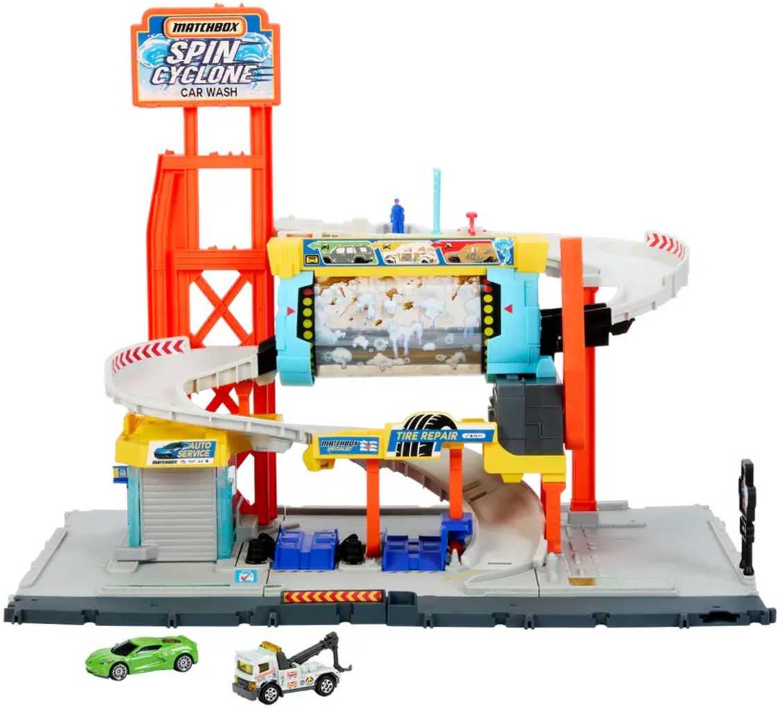 Matchbox Roterande biltvättslekset med gjuten Corvette och bärgningsbil