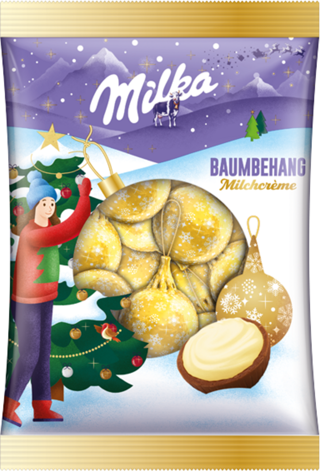 Milka Christmas Tree Baubles with Milk Cream, Guld (90 g)