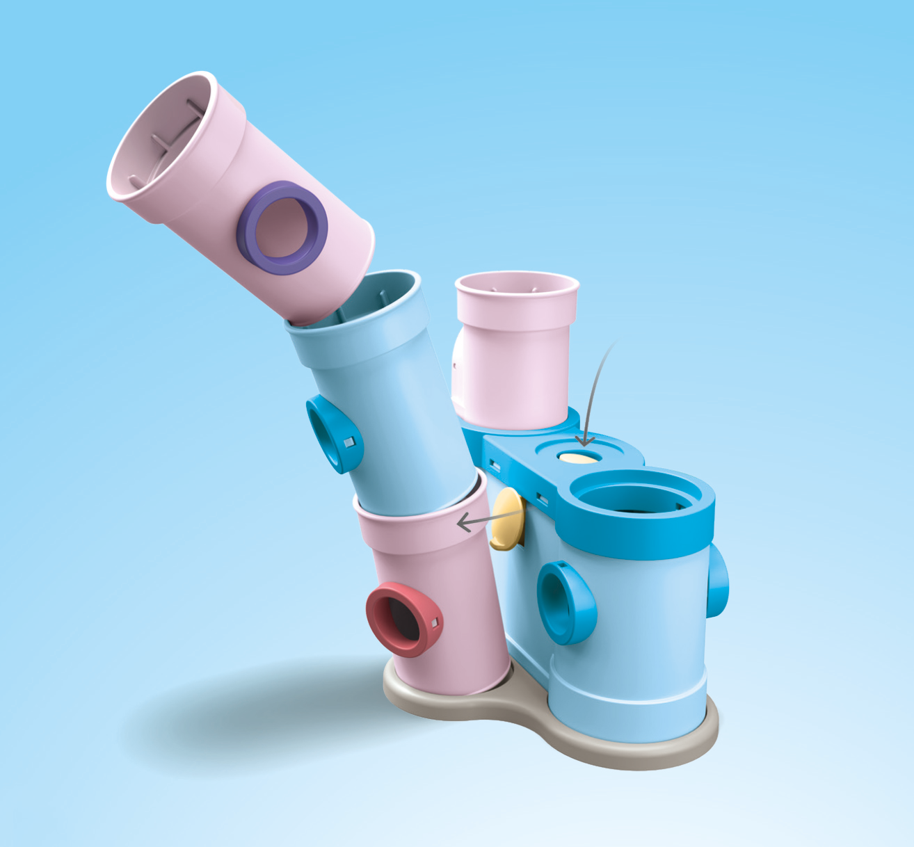 - Tillbehör: 1 slottsbaselement med rutschkana, 6 färgade torn, 2 genomskinliga torn, 3 torntak, 3 flaggor, 4 fönsterplug-in-element