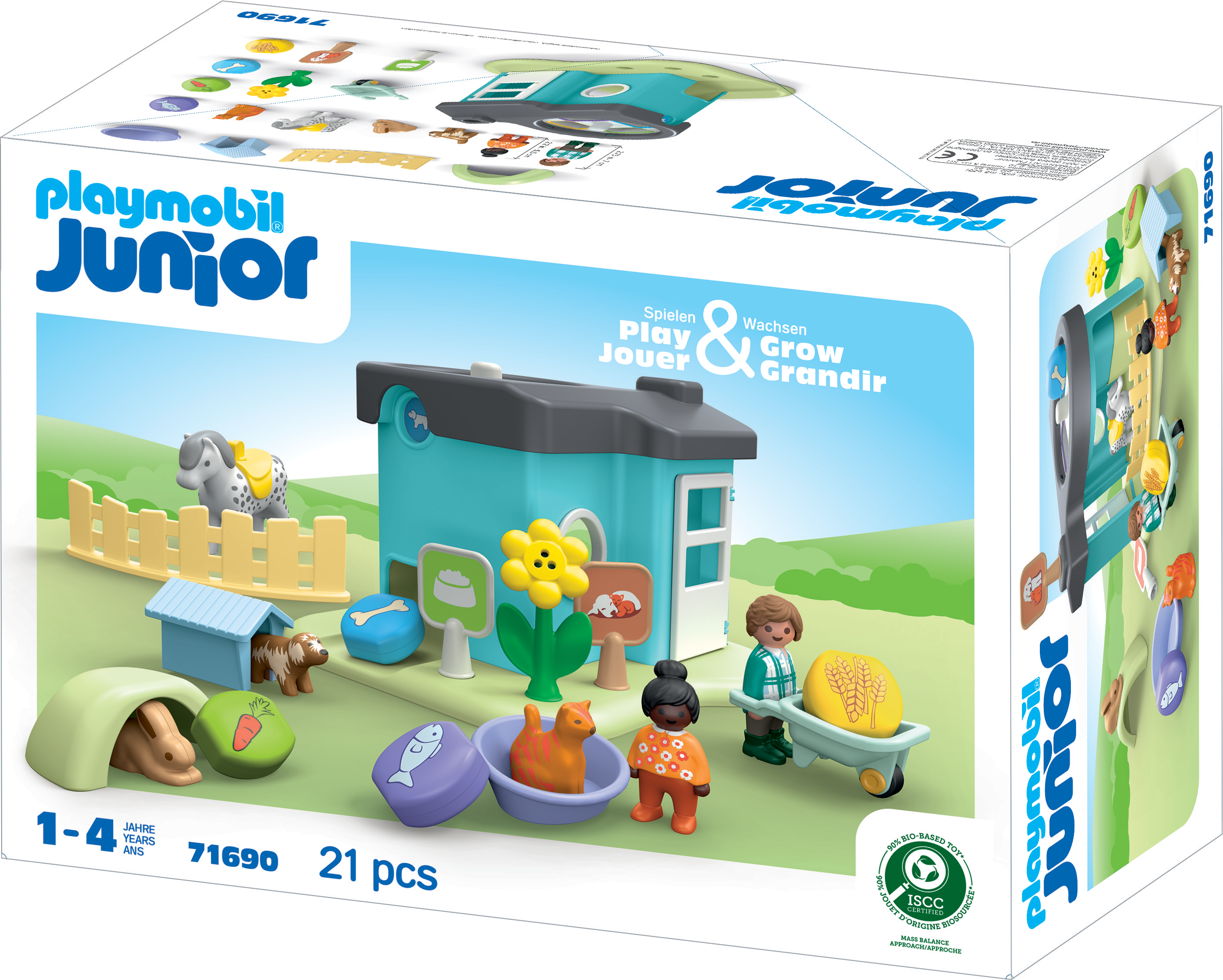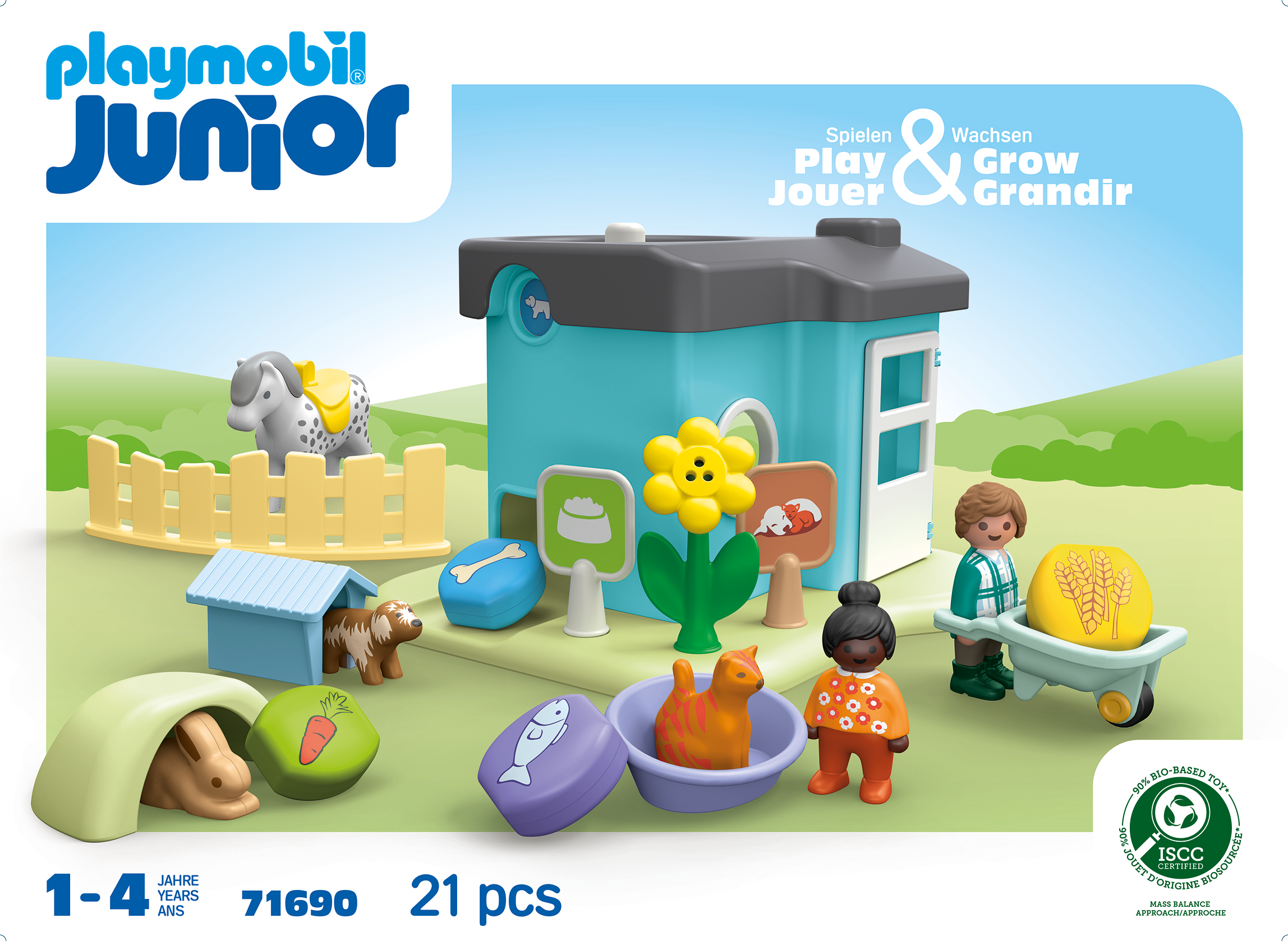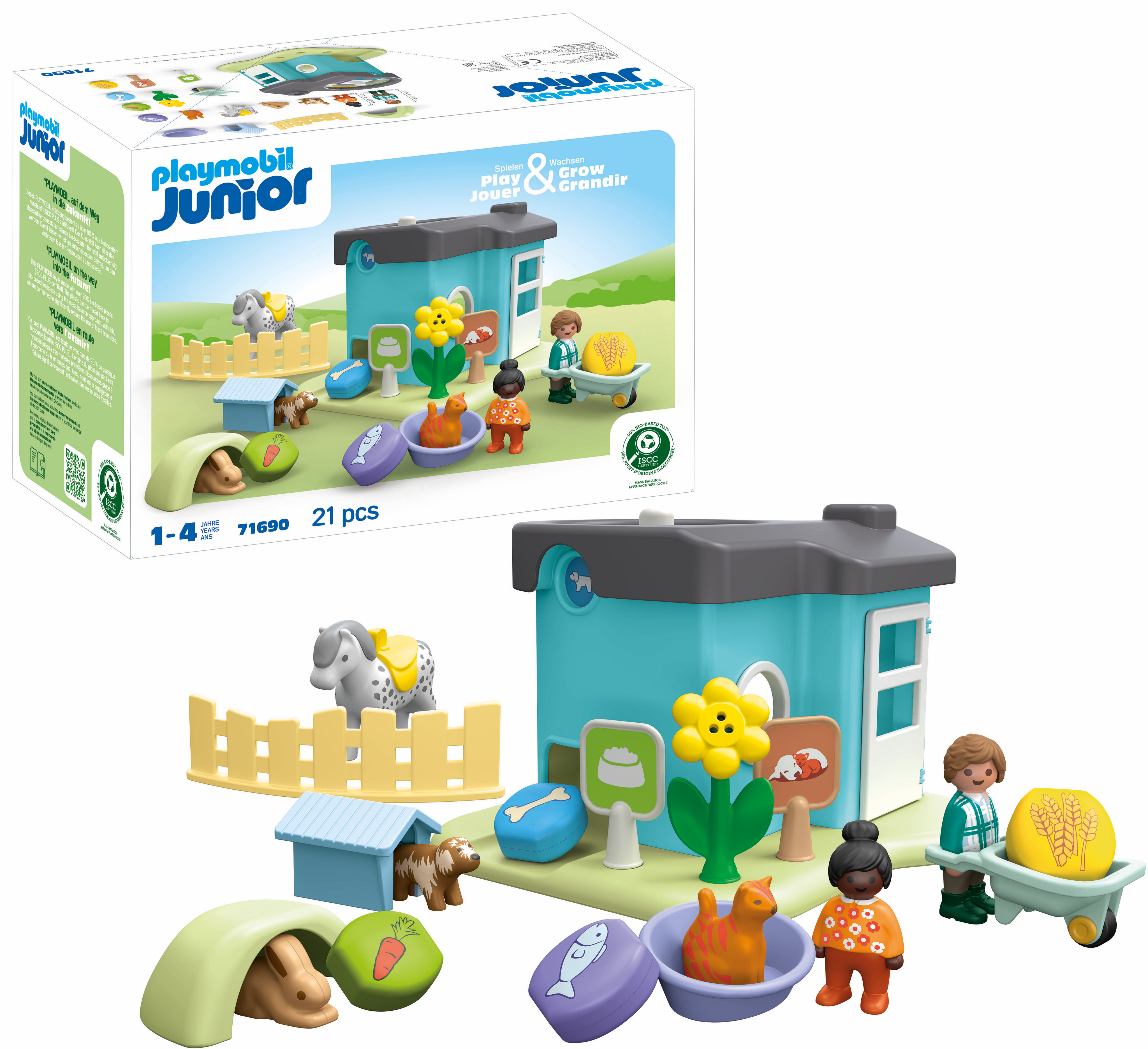 Tillbehör: 1 kennel med matautomat, 1 hundkennel, 1 kattkorg, 1 kaningrotta, 4 matstenar, 1 skottkärra, 1 staket, 2 skyltar, 1 blomma