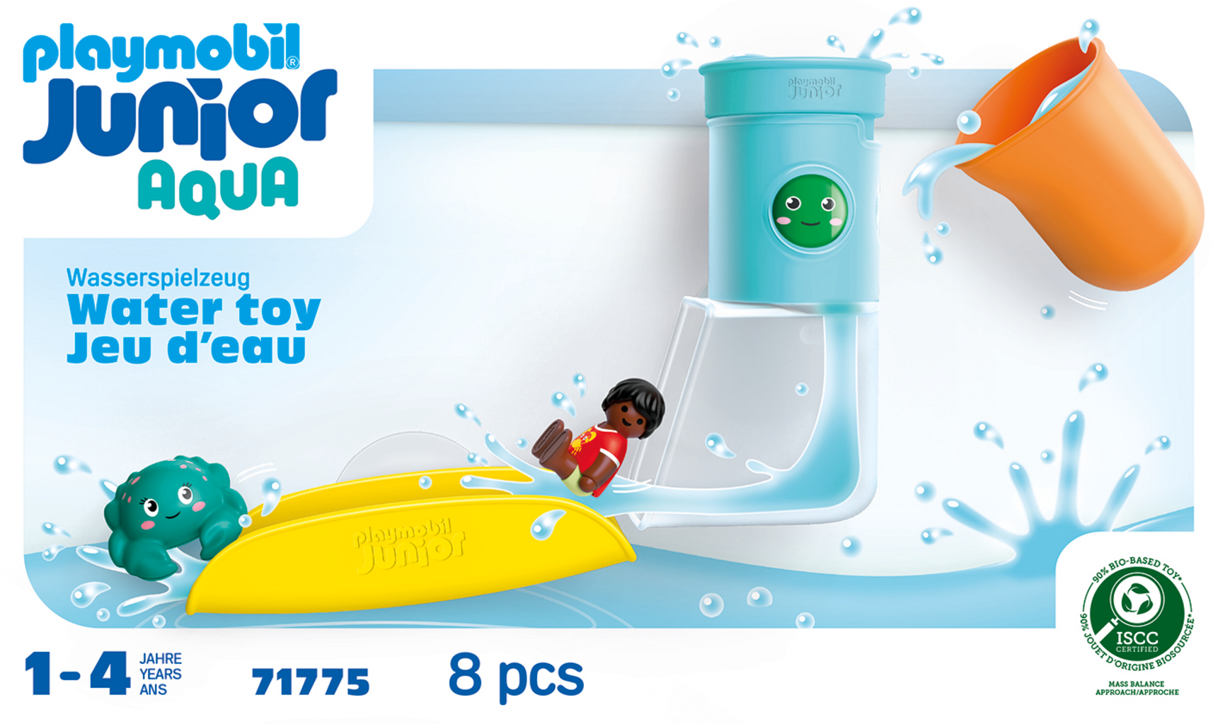 Innehåll: 1 pojke, 1 krabba, 1 rutschkana, 1 hällkopp, 1 vattenfallstank med justerbar kopp