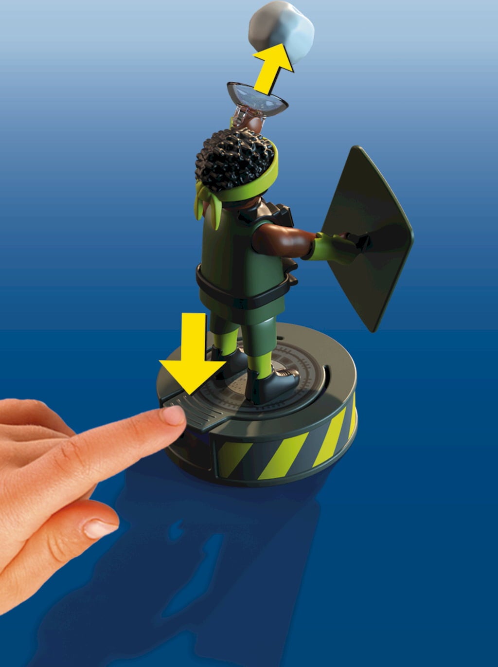 Innehåll: 2 män, 1 fordon, 2 missiler, 1 hoppplattform, 1 genomskinlig bollhållare, 3 stenar, 1 sci-fi-hjälm, 1 handkanon, 1 batong, 3 projektiler, 1 bälte, 1 murbräcka, 1 sköld, 1 stav, 2 handskfästen, 2 armmanschetter, 1 bröstskydd, 1 silikonpannband