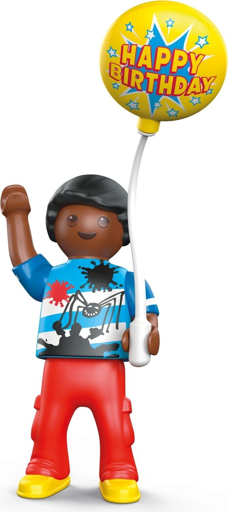 Innehåll: 1 flicka, 2 pojkar, 1 litet bord, 6 burkar, 3 bollar, 1 ballong, 1 födelsedagstårta med ljus, 1 personlig skylt