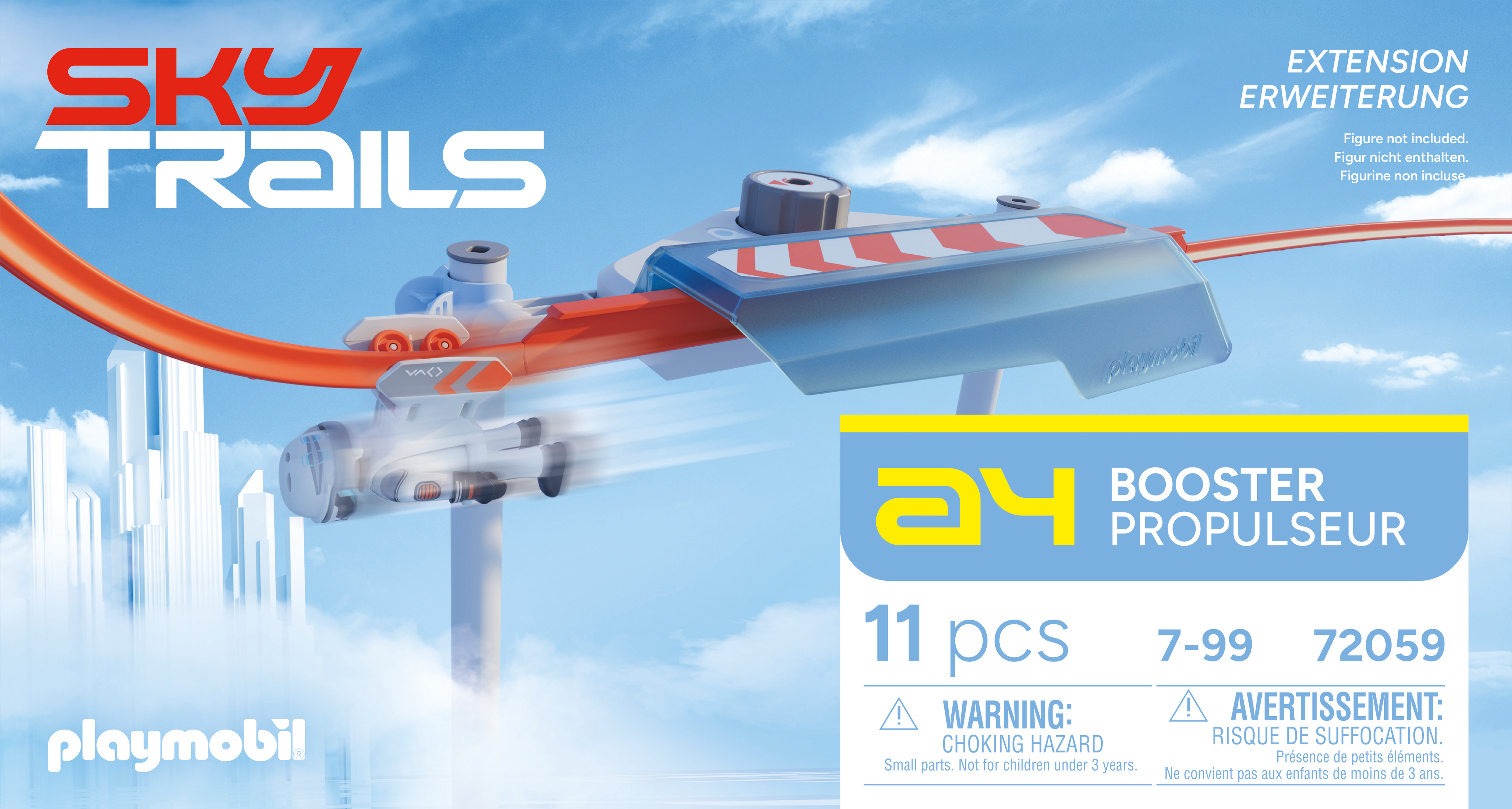 Boostern ger inte bara kraft till Sky Trails-banan, utan definitivt mer fart! Den ger extra kraft så att Sky Rider perfekt kan bemästra nästa loop, eller helt enkelt fortsätta flyga spektakulärt snabbt.