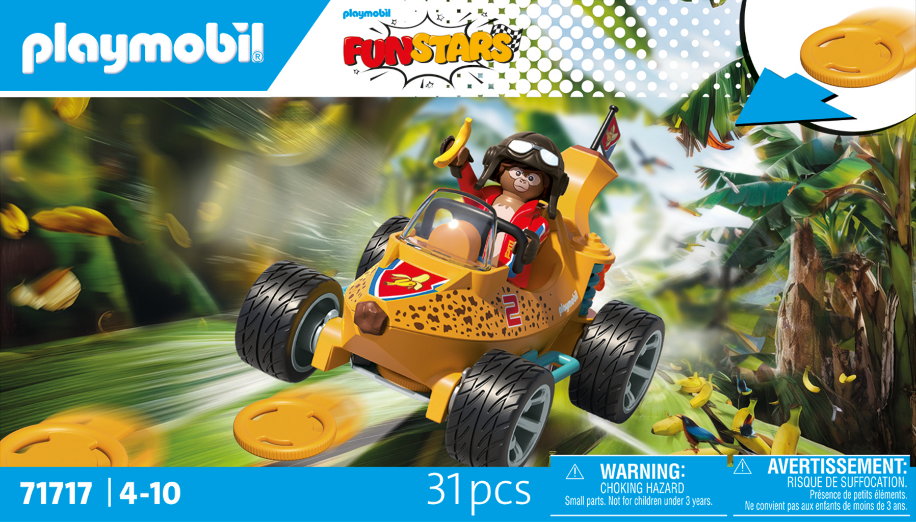 Innehåll: 1 man, 1 bananbil, 2 flygande skivor, 1 flagga, 2 handskfästen, 1 hjälm, 1 banan