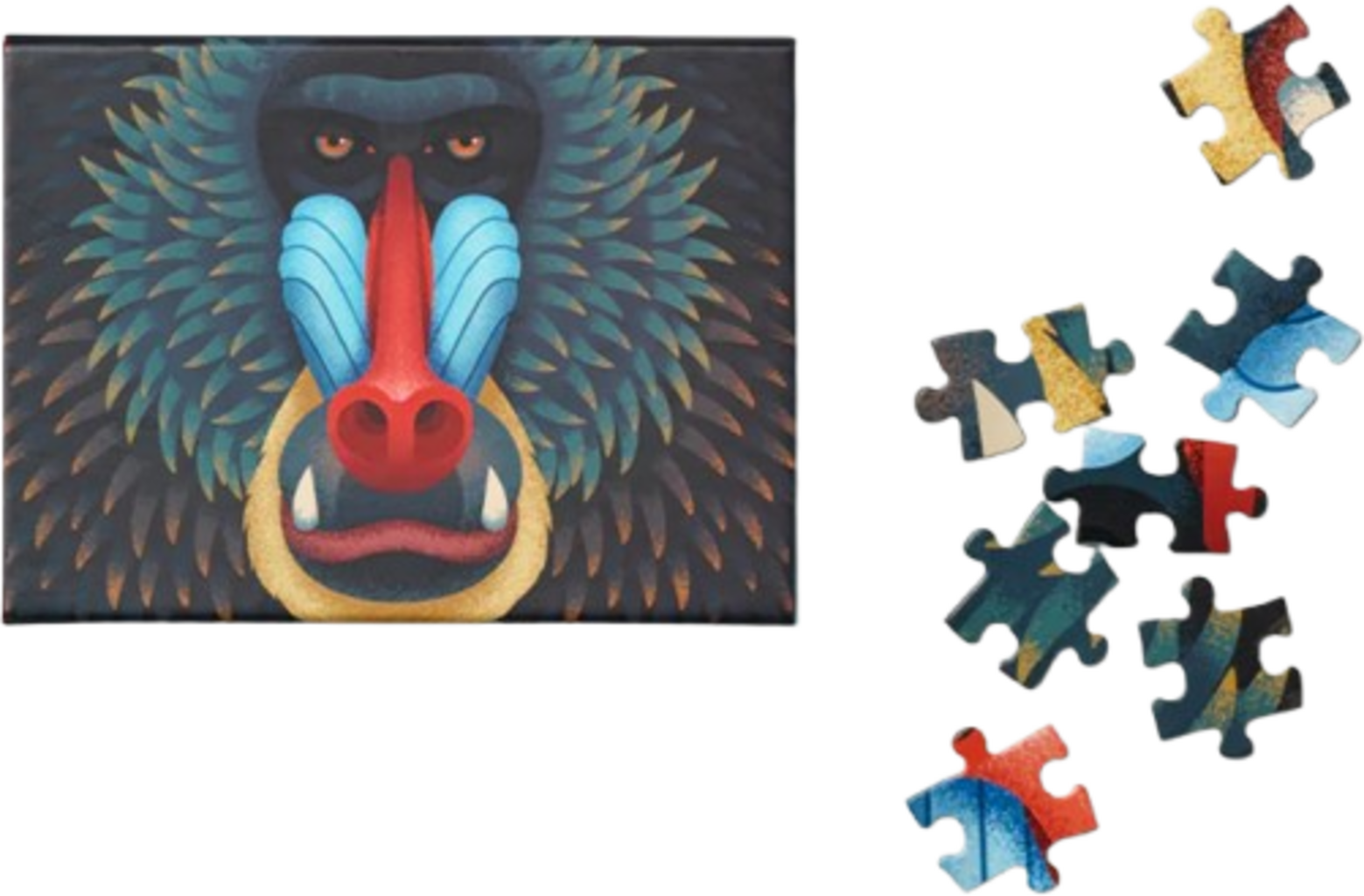 Upplev ett spännande och samtidigt meditativt pusseläventyr med Mandrill-pusslet. Det kompakta formatet med 100 bitar gör det perfekt för både barn och vuxna som vill ha en snabb och tillfredsställande pusselupplevelse. Den smidiga storleken gör det extra flexibelt – idealiskt att ta med på resan.