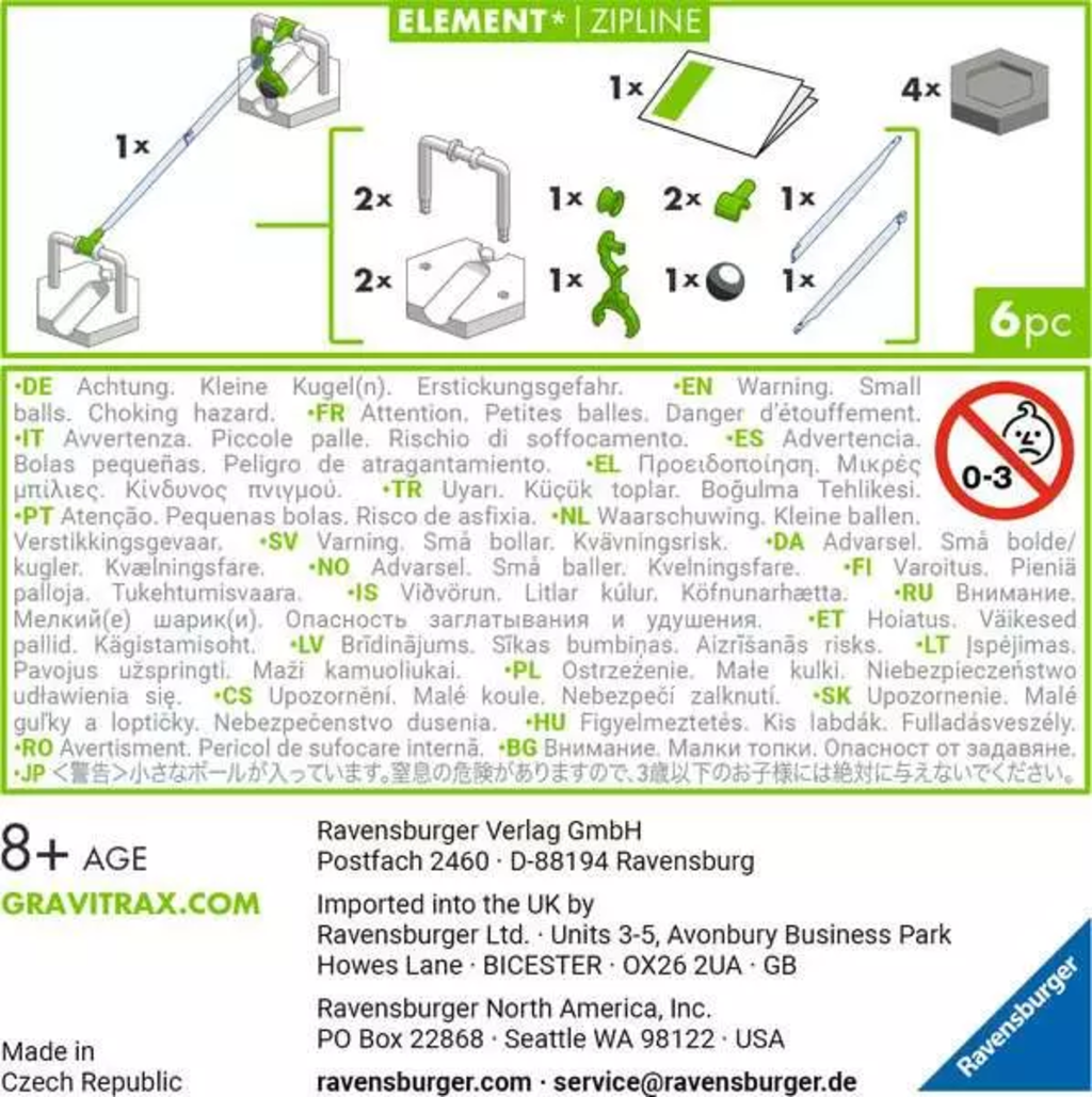 svenska recensioner skriven för Ravensburger GraviTrax Element Zipline - Kulbaneutbyggnad