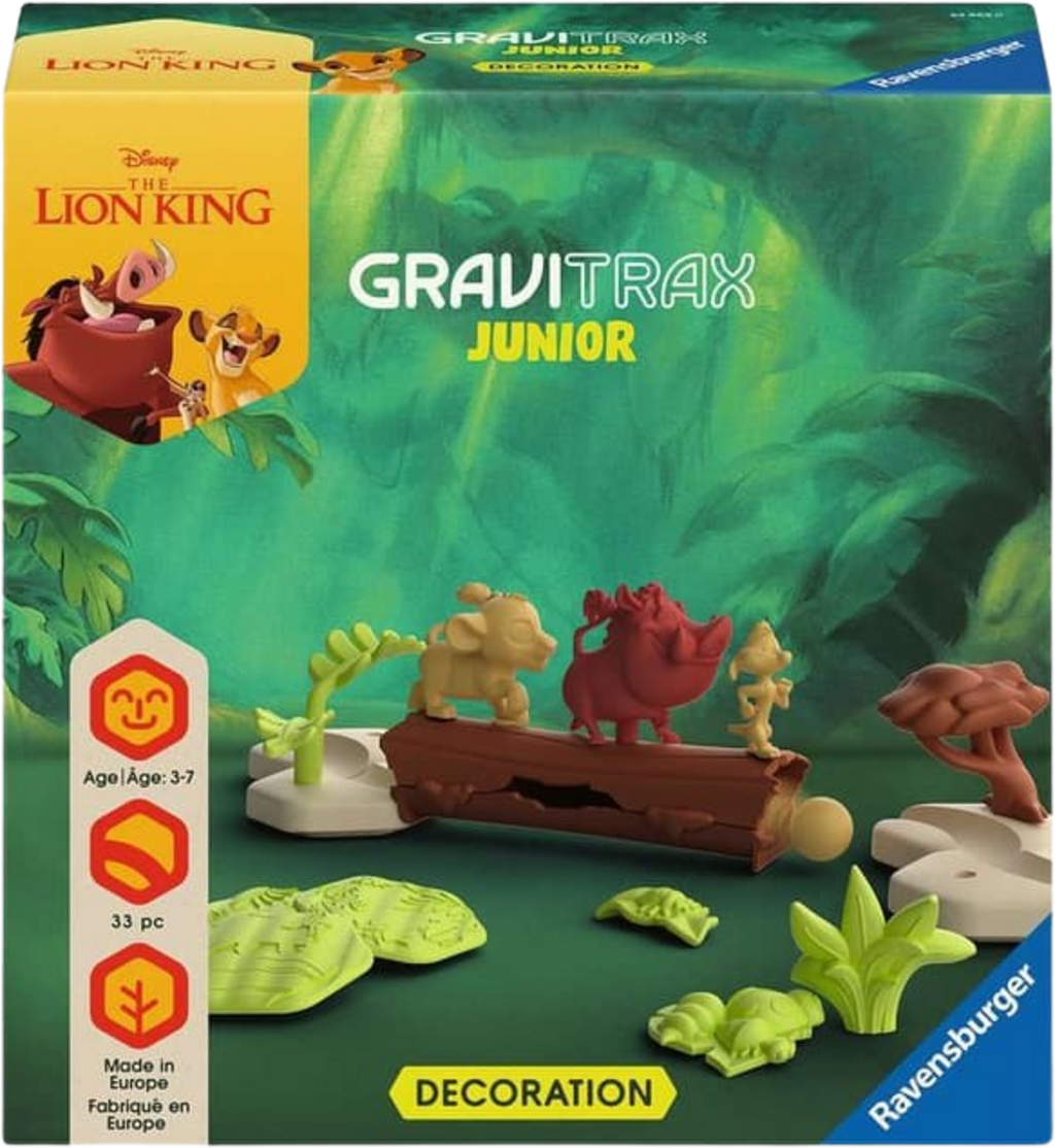 Ta med magin från den afrikanska savannen direkt in i barnrummet! Med GraviTrax Junior Extension Disney Lion King skapar barn från 3 år sin egen värld inspirerad av Lejonkungen. Setet kombinerar interaktivt kulbanebyggande med älskade karaktärer från Disneyklassikern och ger extra lekglädje.