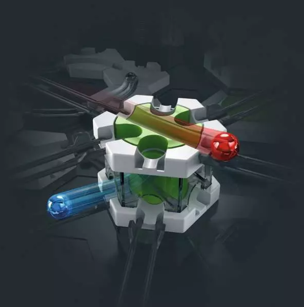 Principen är lika enkel som smart: När en kula rullar genom Turntable nedåt ändrar den inte bara sin egen riktning, utan ställer samtidigt om växeln för nästa kula. På så sätt lär sig barnen att planera flera steg i förväg och styra kulornas väg med precision. Det stärker det logiska tänkandet och gör fysikens samband tydliga och påverkbara.