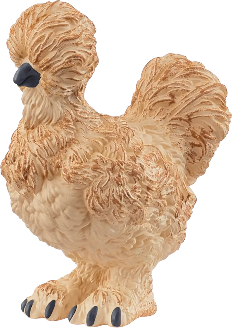 Silkeshönan förtrollar med sin frodiga, mjuka fjäderdräkt som till och med täcker dess fötter. Barn kan klappa den, mata den och spela upp spännande bondgårdshistorier med den. Med sin vänliga natur och roliga, vingliga gång ger silkeshönan massor av roliga och livliga aktiviteter till vilken lekvärld som helst.