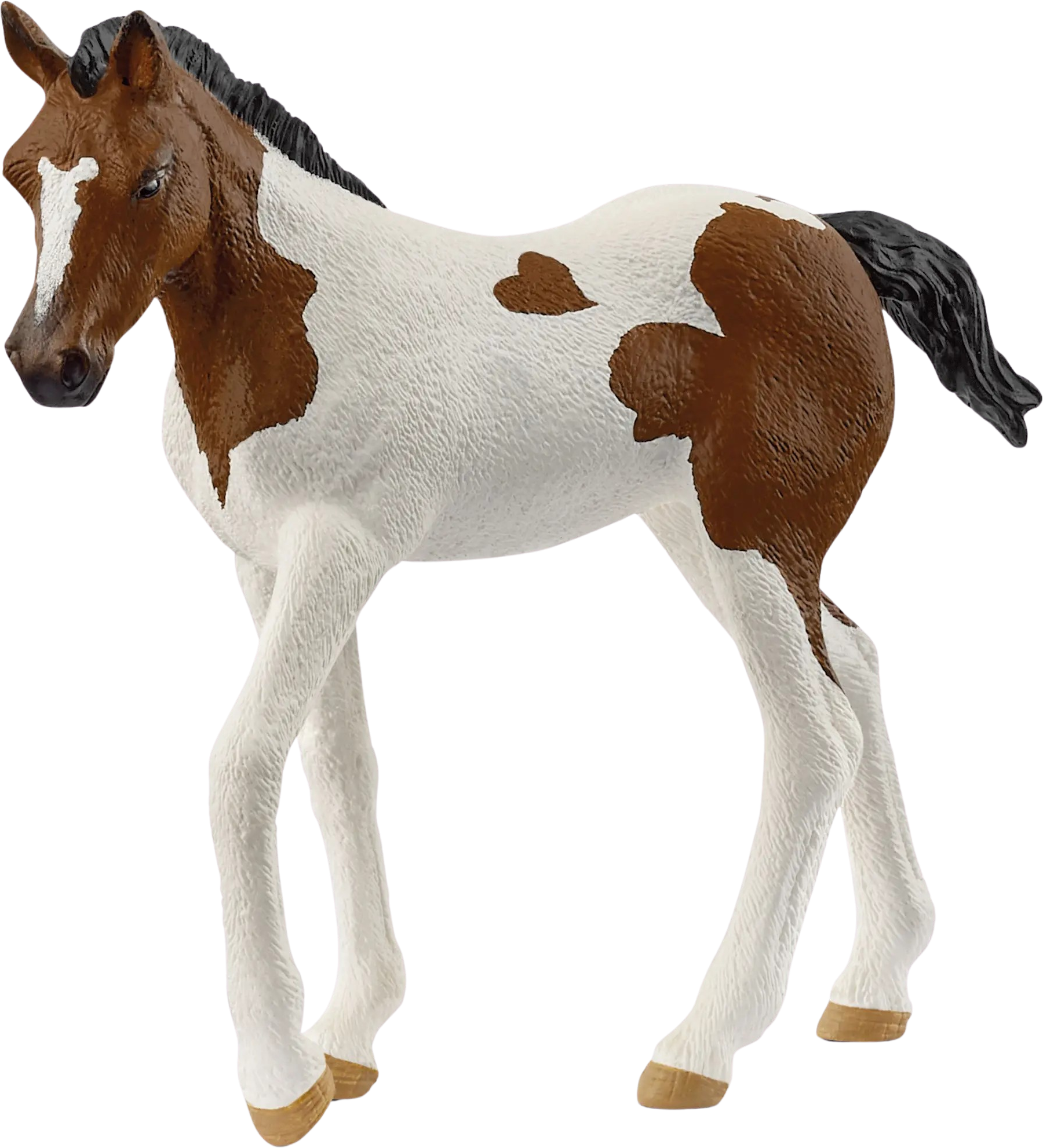Paint Horse-fölet förtrollar med sin söta pinto-päls, kolsvarta man och lilla hjärta på ryggen. Med nyfikna öron utforskar det hagen, nosar på godis och inbjuder till fantasifulla rollspel. Barn kan uppleva fölet tillsammans med stoet och valacken i Paint Horse-familjen och spela ut spännande äventyr.