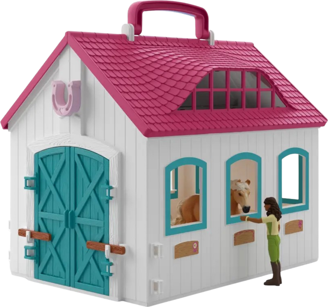 Det kärleksfullt designade öppna stallet tar hästarnas värld direkt in i barnrummet. Hage, stall och tillbehör är perfekta för fantasifulla lekar och äventyr med Schleich-figurer. Tack vare den praktiska väskan kan allt enkelt förvaras och tas med överallt.