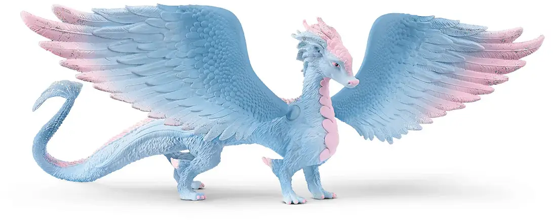 Kristalldraken Special från BAYALA® imponerar med sina blå vingar, rosa spetsar och långa, eleganta kropp. Dess ödleliknande stjärt och de täta fjäll på bröstet gör den till ett riktigt blickfång. Oavsett om den svävar genom luften eller glider majestätiskt, drar denna drake allas blickar till sig och inbjuder till samlande och lek.